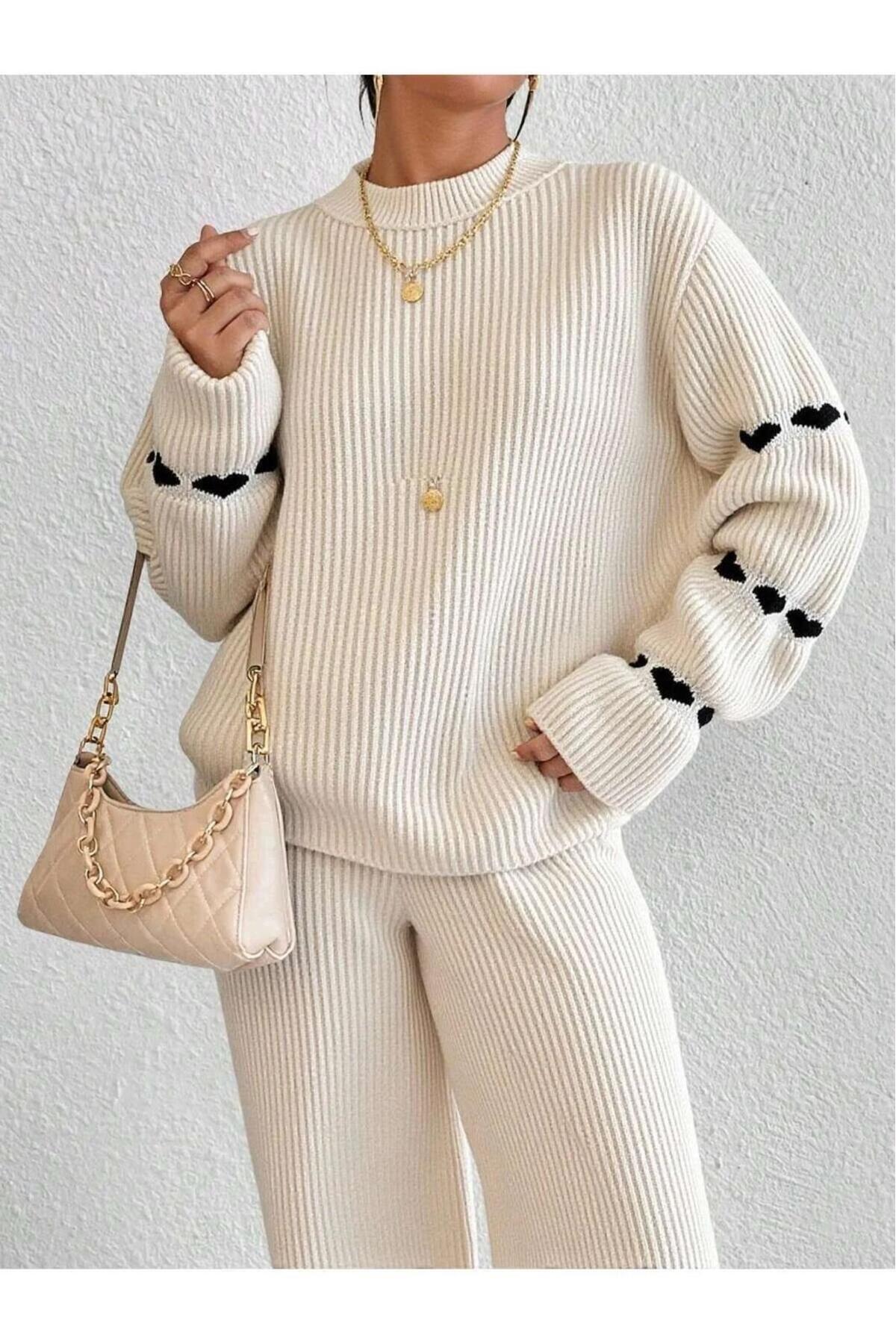 Kalp Detaylı Oversize Triko Takım Kalp Detaylı Oversize Triko Takım kalptakım Standart