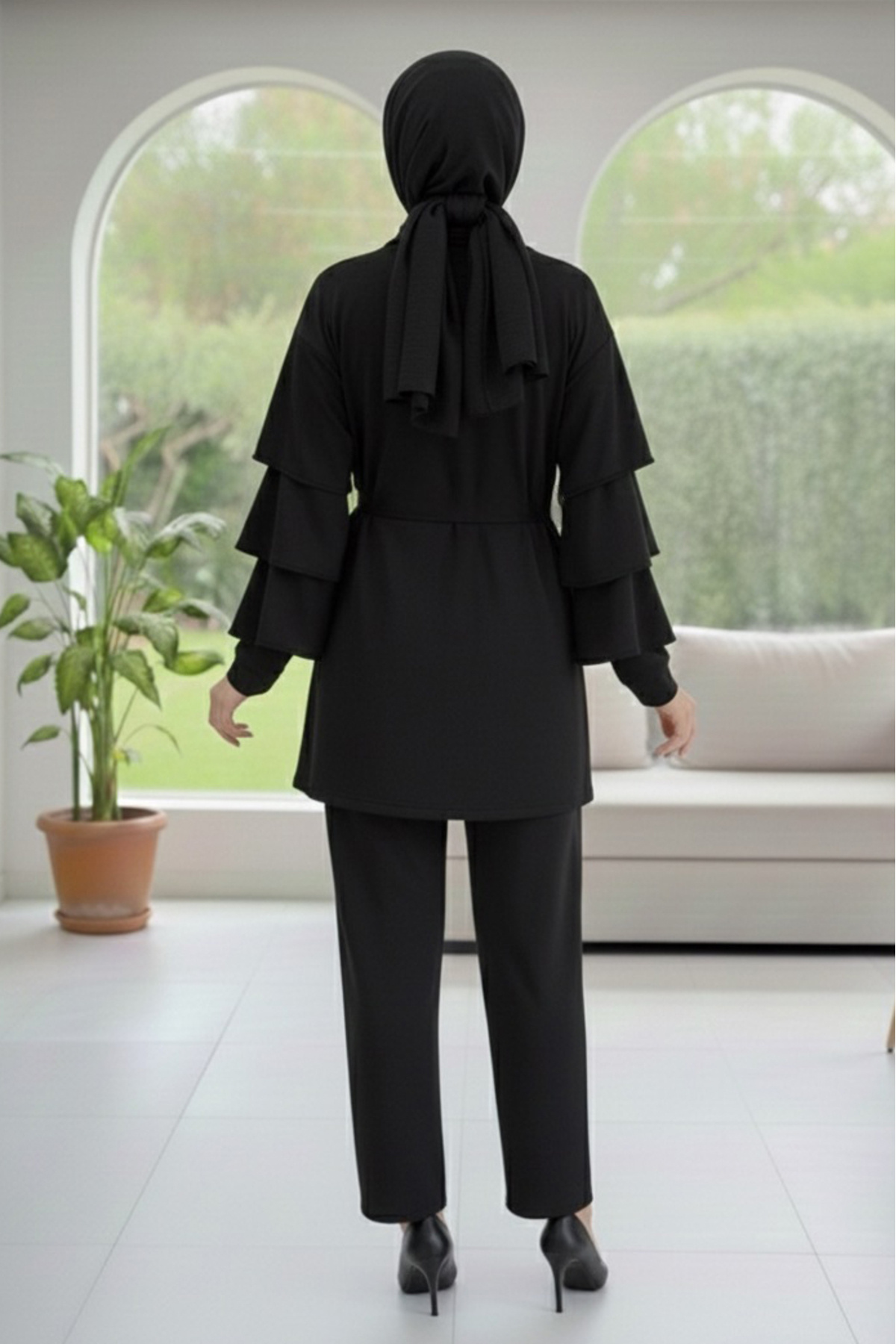 Kolları Fırfırlı Modal İkili Takım Siyah - 089-SIYAH Kolları Fırfırlı Modal İkili Takım Siyah - 089-SIYAH 2XL
