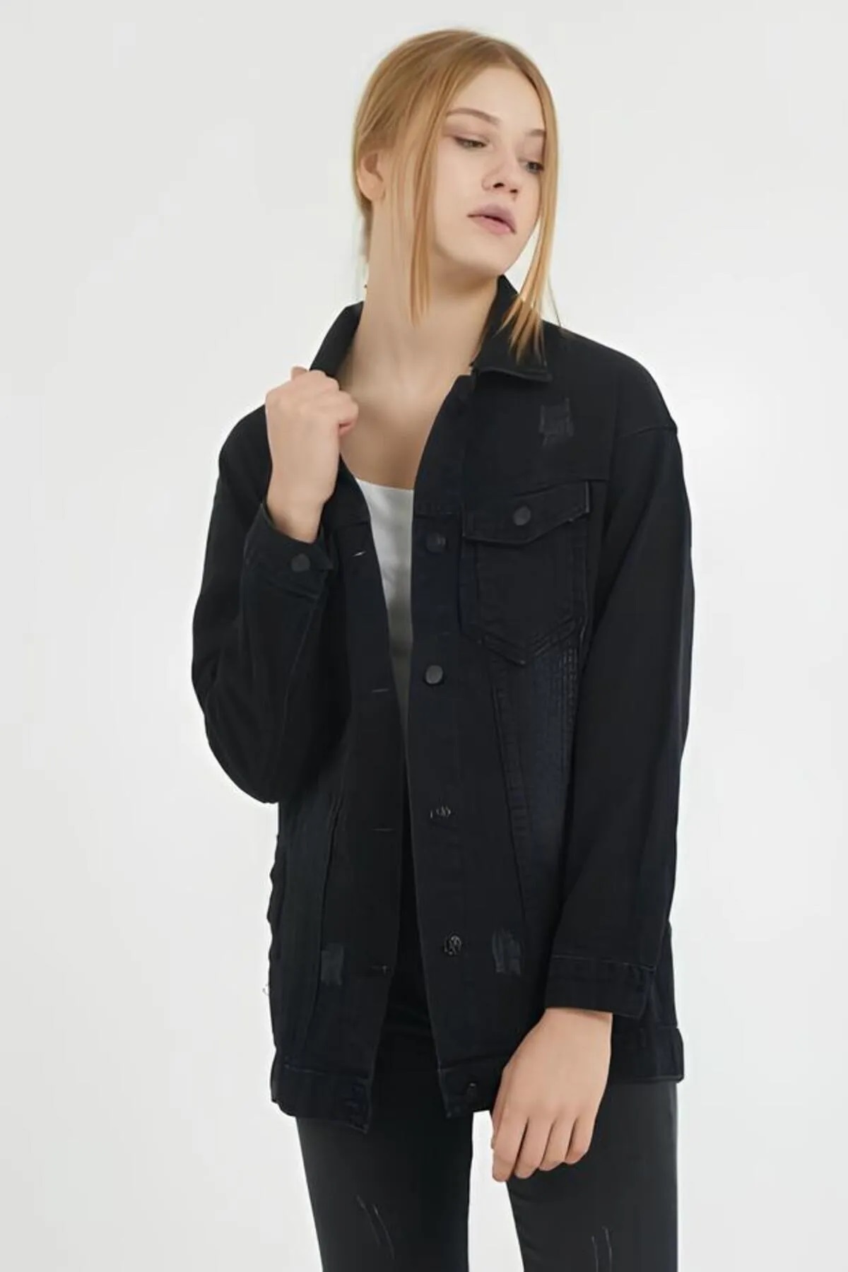 Kadın Jean Uzun Ceket 1039d Siyah Kadın Jean Uzun Ceket 1039d Siyah 1039D 2XL