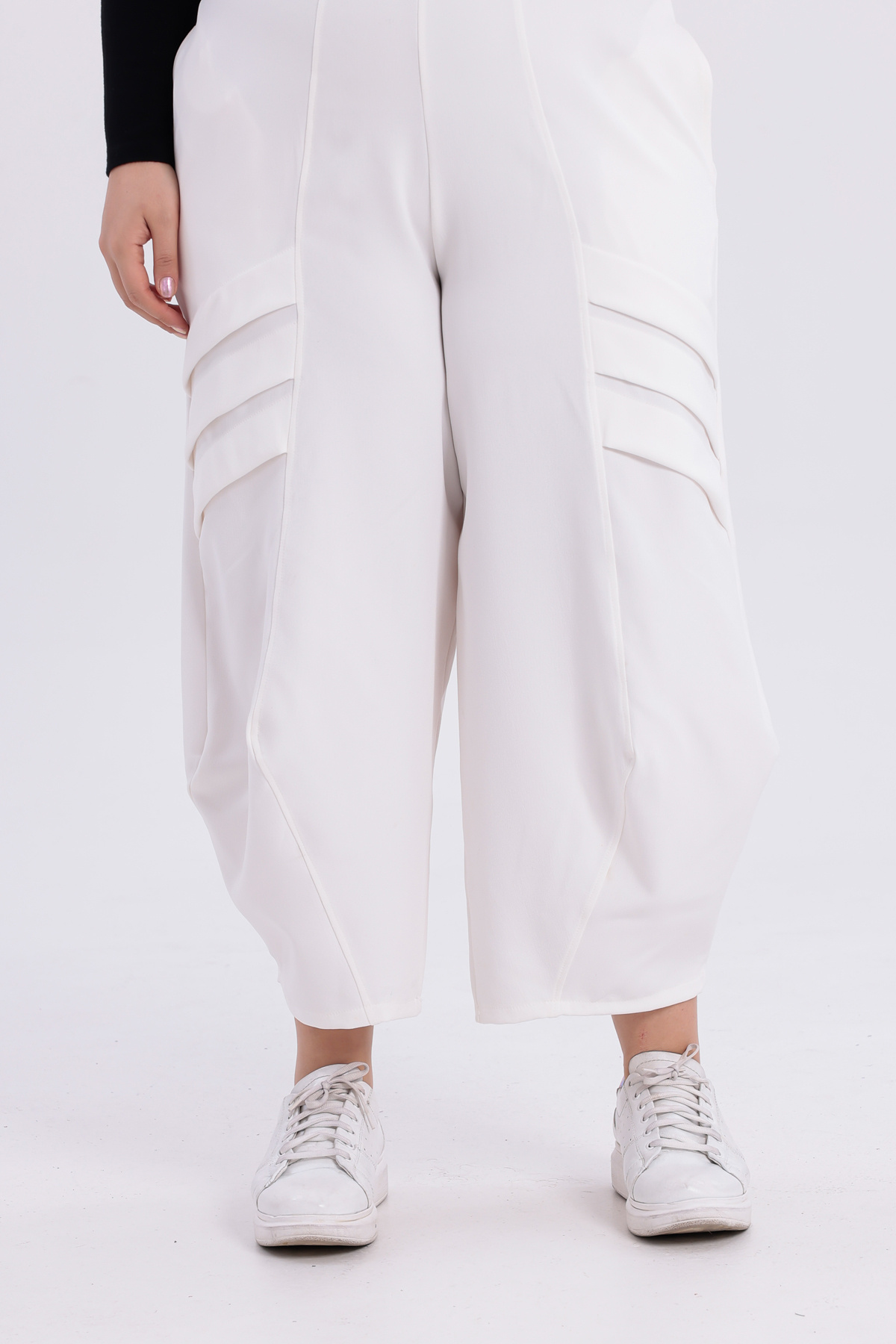 Özel Tasarım Beyaz Cepli Double Face Kumaş İşleme Detaylı Beli Lastikli Rahat Pantolon 5028 Özel Tasarım Beyaz Cepli Double Face Kumaş İşleme Detaylı Beli Lastikli Rahat Pantolon 5028 60