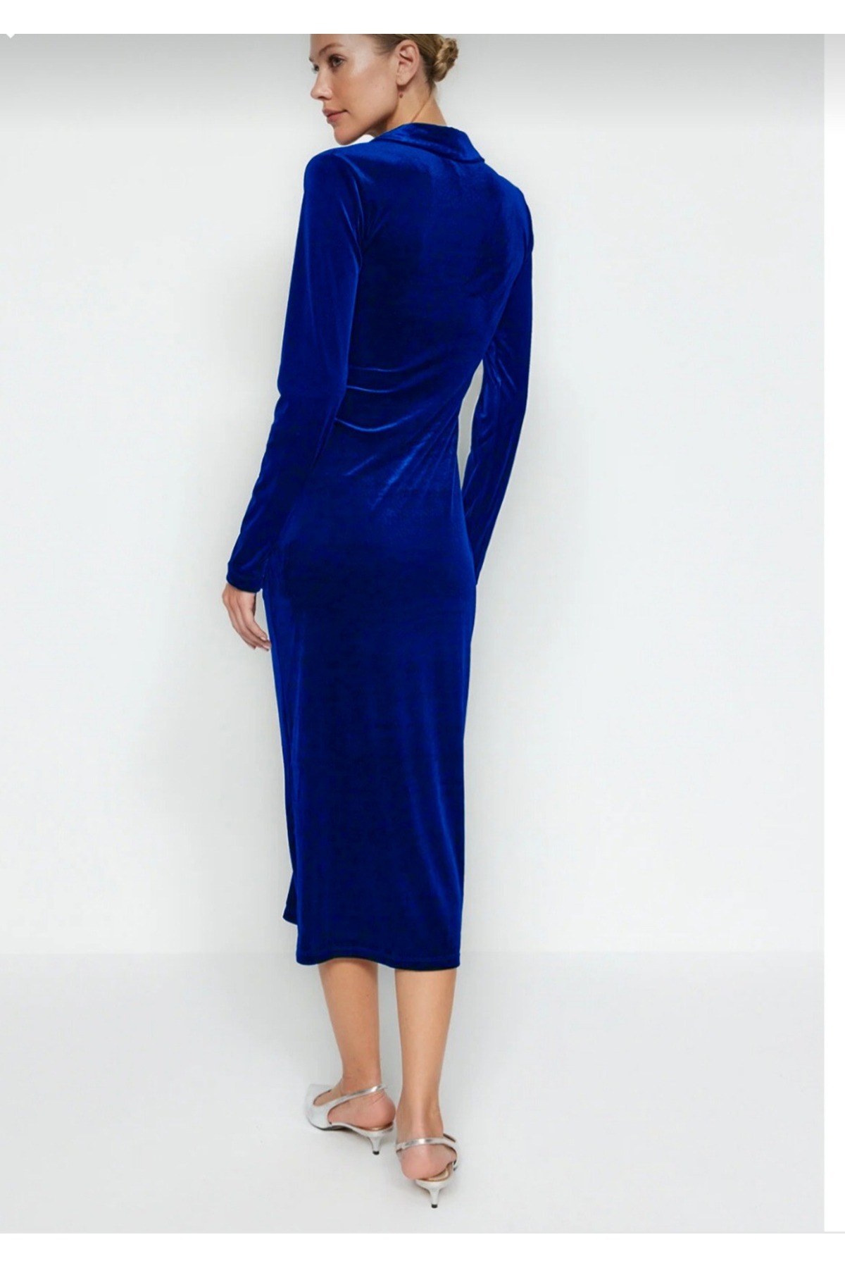Vucuda Oturan Polo Yaka Büzgü Detay Midi Boy Esnek Kadife Kalem Elbise Vucuda Oturan Polo Yaka Büzgü Detay Midi Boy Esnek Kadife Kalem Elbise vera0016 XL
