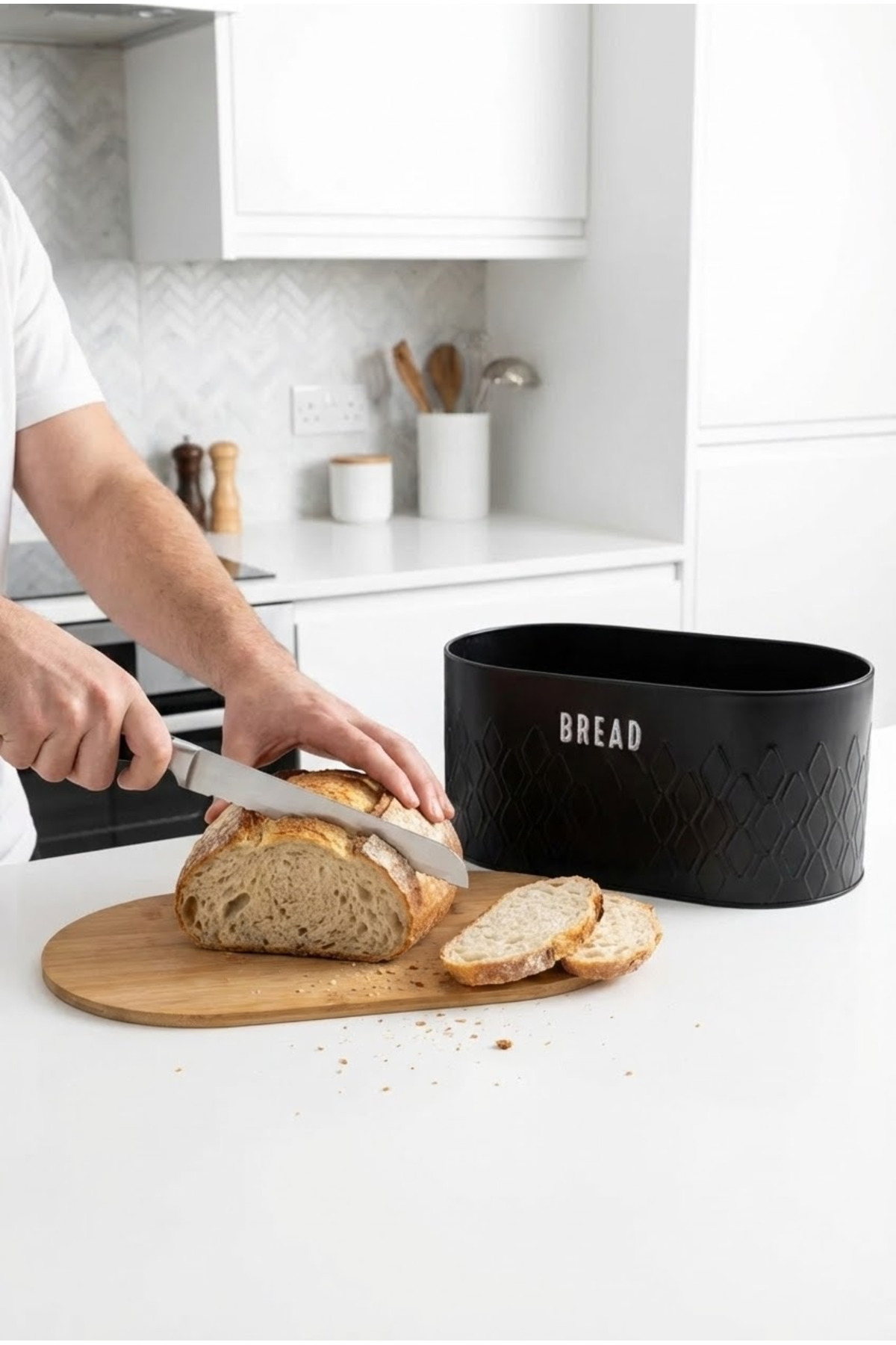 Ekmeklik, Metal Ekmek Kutusu, Bambu Kapaklı Siyah Ekmek Sepeti, 34 x 19 x 16 Cm Ekmeklik, Metal Ekmek Kutusu, Bambu Kapaklı Siyah Ekmek Sepeti, 34 x 19 x 16 Cm MKR-344 تک سایز