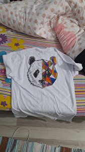 Oversize Panda Baskılı Beyaz Tshirt Oversize Panda Baskılı Beyaz Tshirt OVRSZTSHRT127 3XL/4XL
