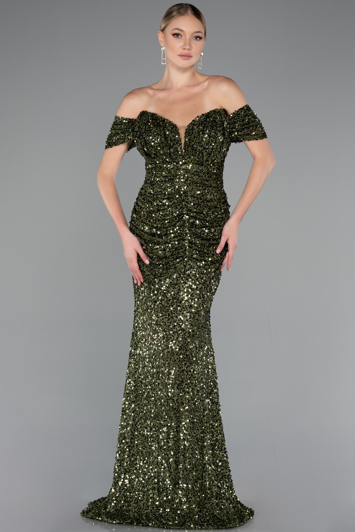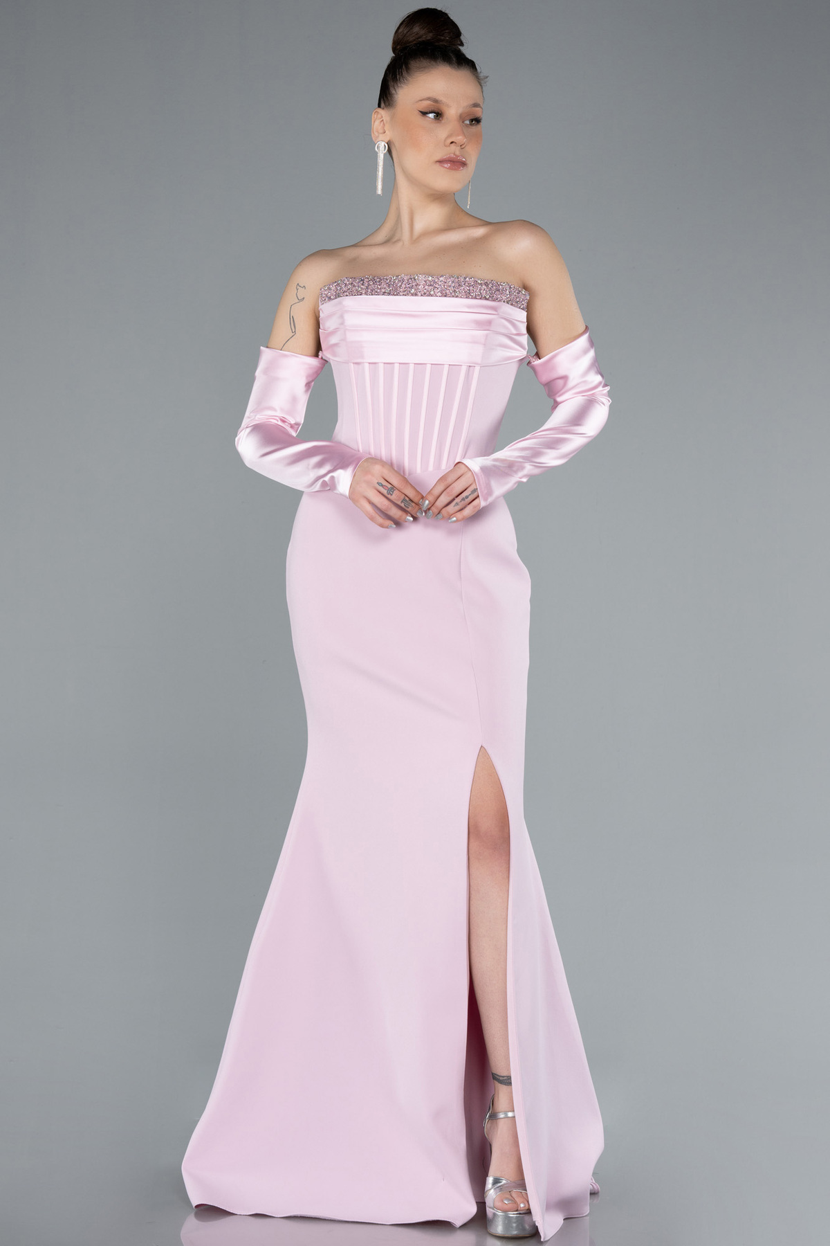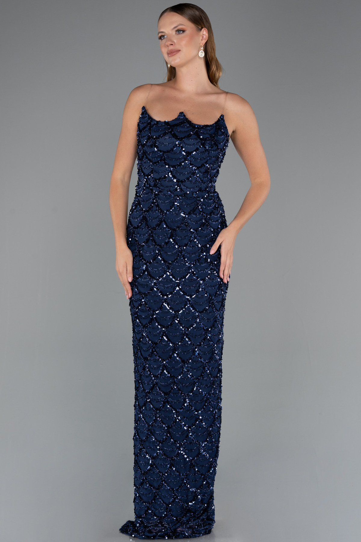 Bej Straplez Boncuklu Uzun Abiye Elbise ABU5477 Bej Straplez Boncuklu Uzun Abiye Elbise ABU5477 44