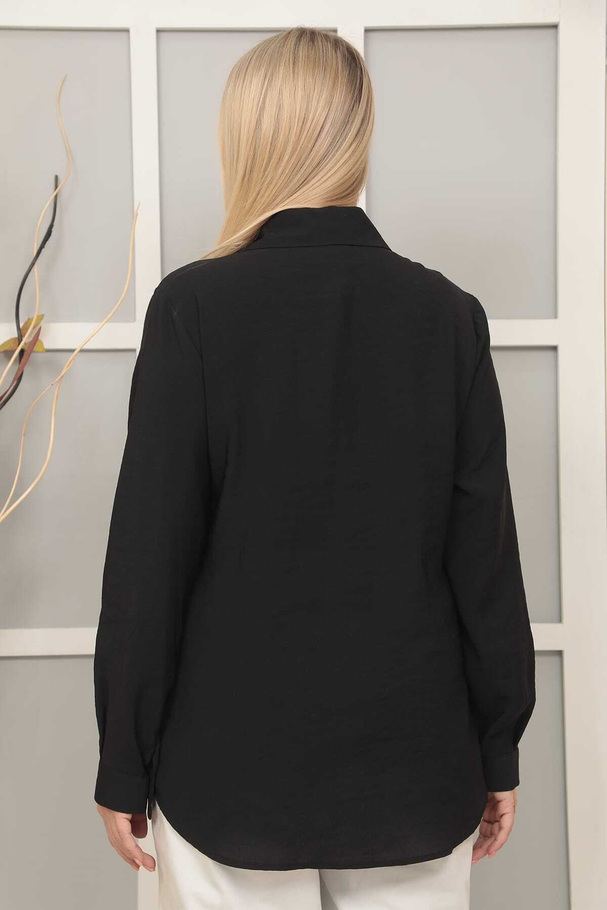 Büyük Beden Modal Kumaş Rahat Kalıp Broş Detaylı Kadın Gömlek Büyük Beden Modal Kumaş Rahat Kalıp Broş Detaylı Kadın Gömlek BCH-G 52