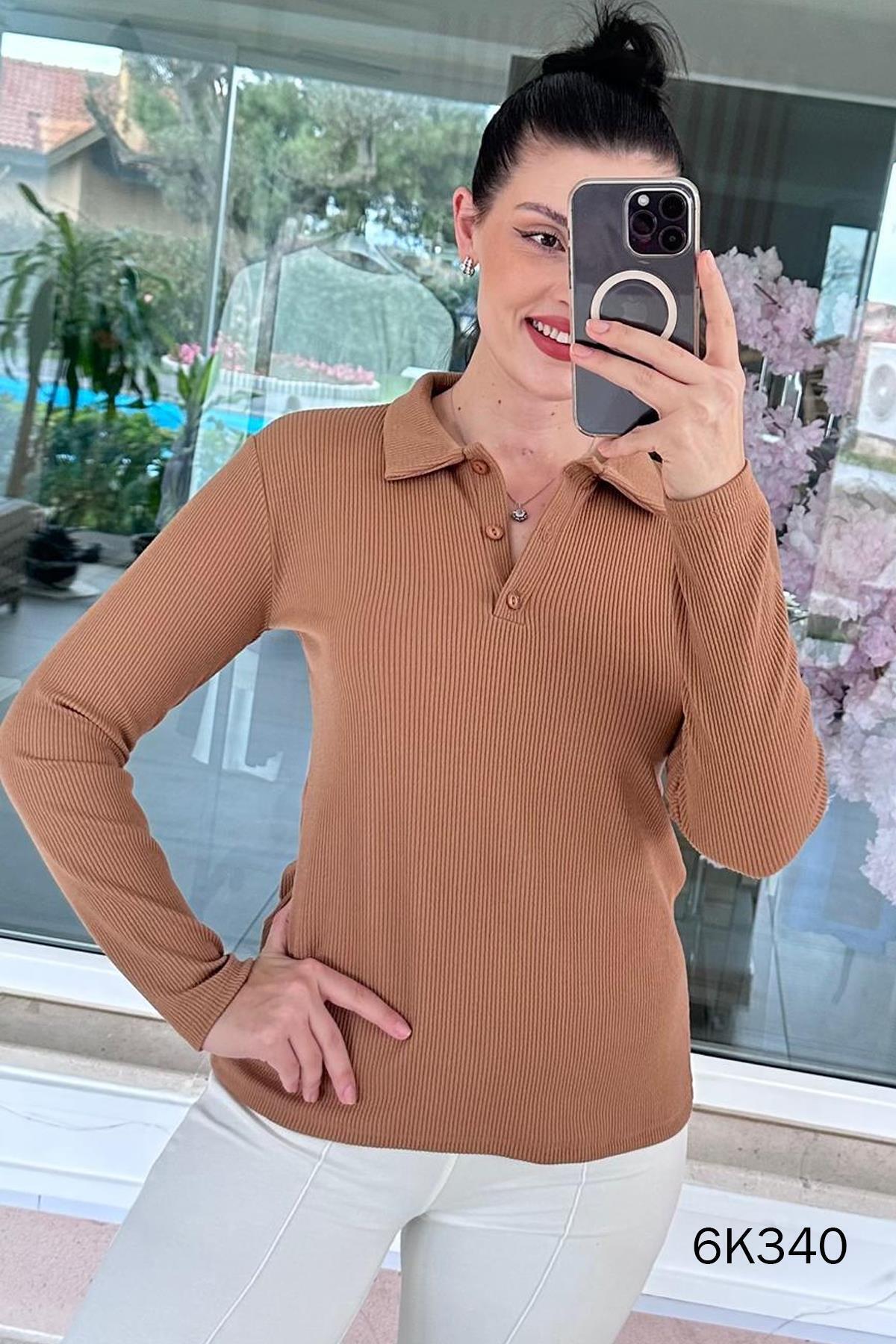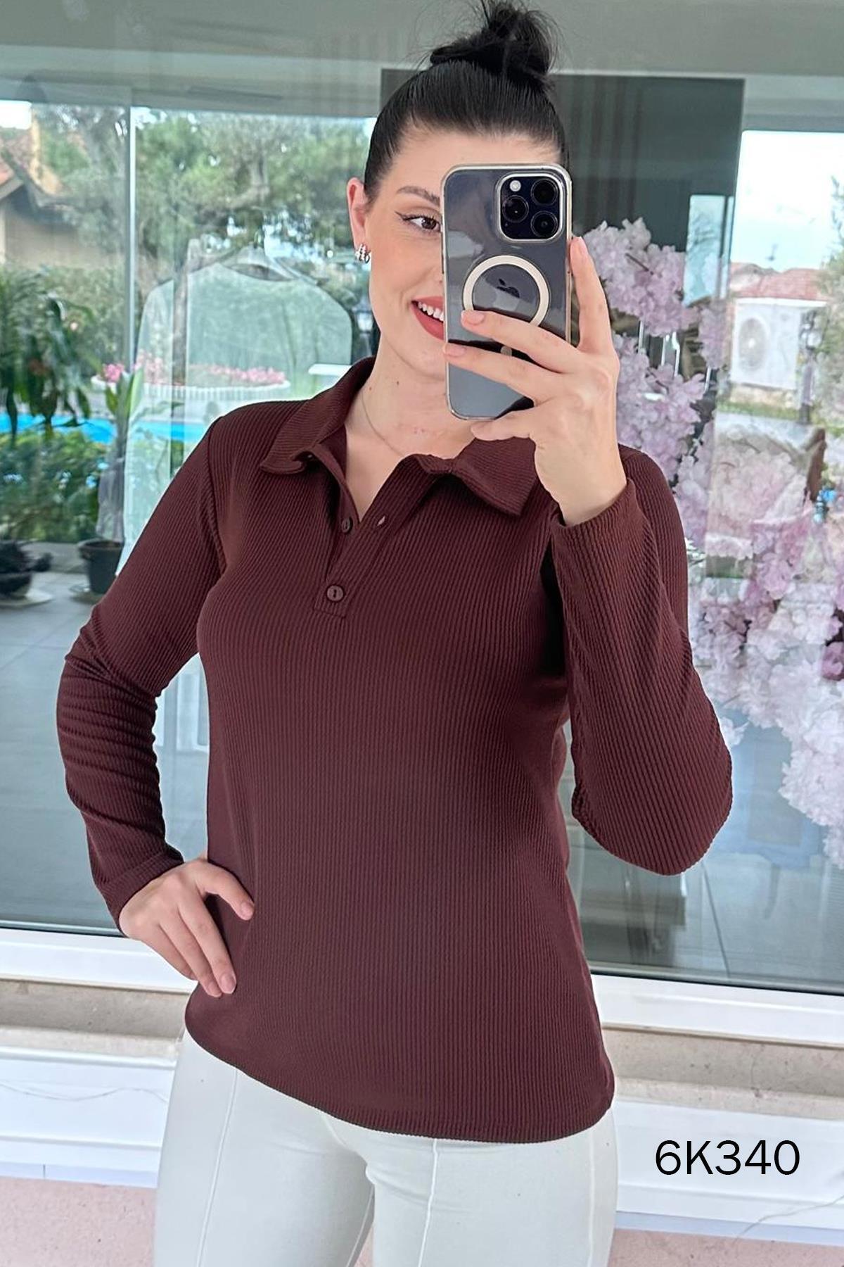 Polo Yaka Fitilli Burgu Kumaş Bluz 6k340 Polo Yaka Fitilli Burgu Kumaş Bluz 6k340 XL