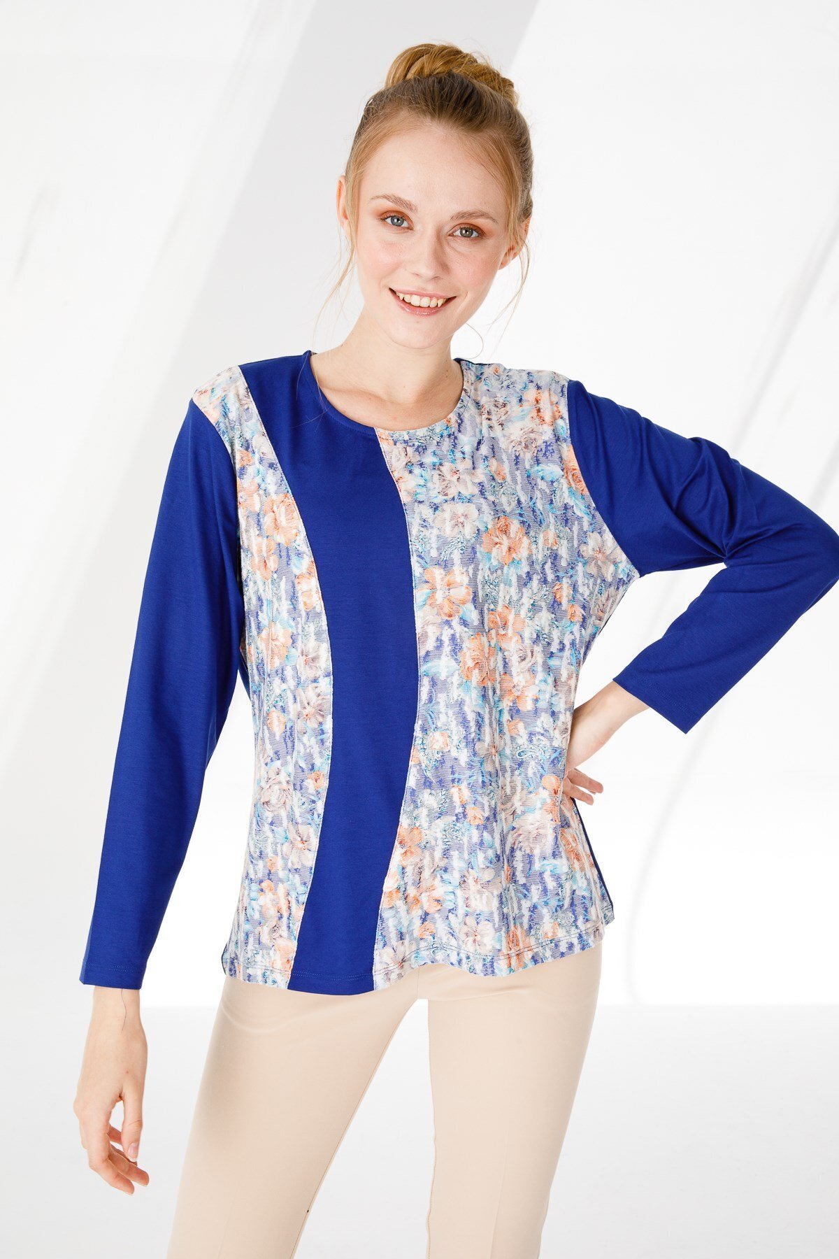 Kadın Sıfır Yaka Uzun Kol Çiçek Baskılı Penye Bluz K.saks Mav Kadın Sıfır Yaka Uzun Kol Çiçek Baskılı Penye Bluz K.saks Mav 20856 XL