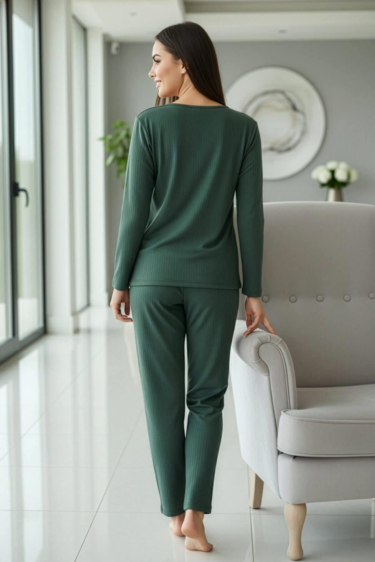 Zümrüt You Desenli Uzun Kollu Dublin Örme Kadın Pijama Takımı Zümrüt You Desenli Uzun Kollu Dublin Örme Kadın Pijama Takımı 5037 2XL