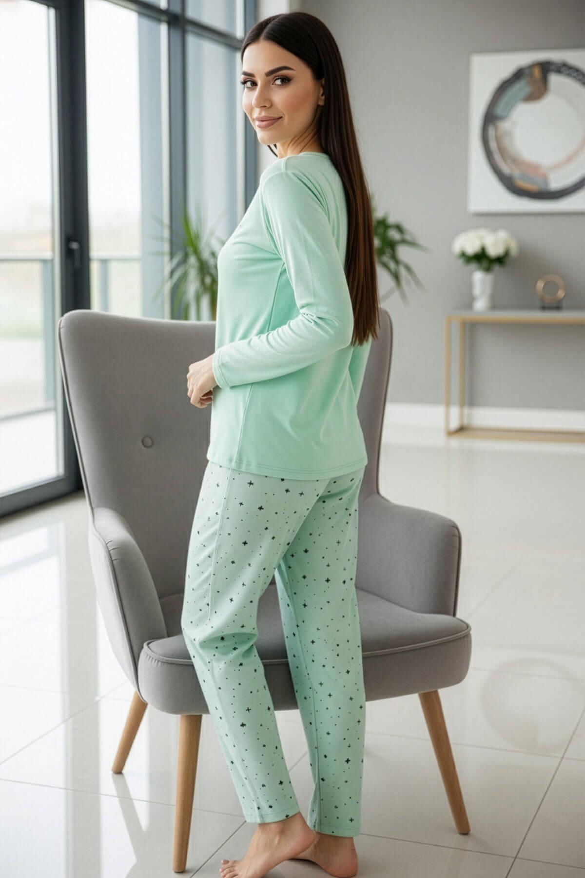 Su Yeşili Heart Desenli Uzun Kollu Bambu Örme Kadın Pijama Takımı Su Yeşili Heart Desenli Uzun Kollu Bambu Örme Kadın Pijama Takımı 5036 2XL
