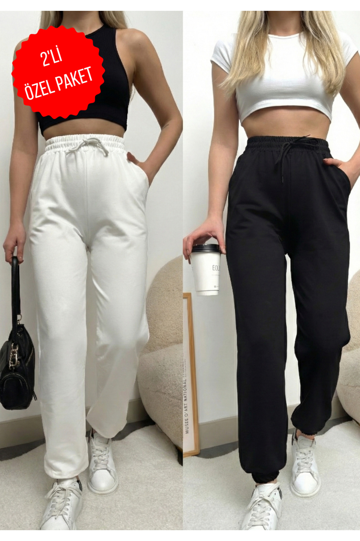Kadın 2 ' li takım Paçası Lastikli Yüksek Bel Jogger Eşofman Altı Kadın 2 ' li takım Paçası Lastikli Yüksek Bel Jogger Eşofman Altı 3001 3XL