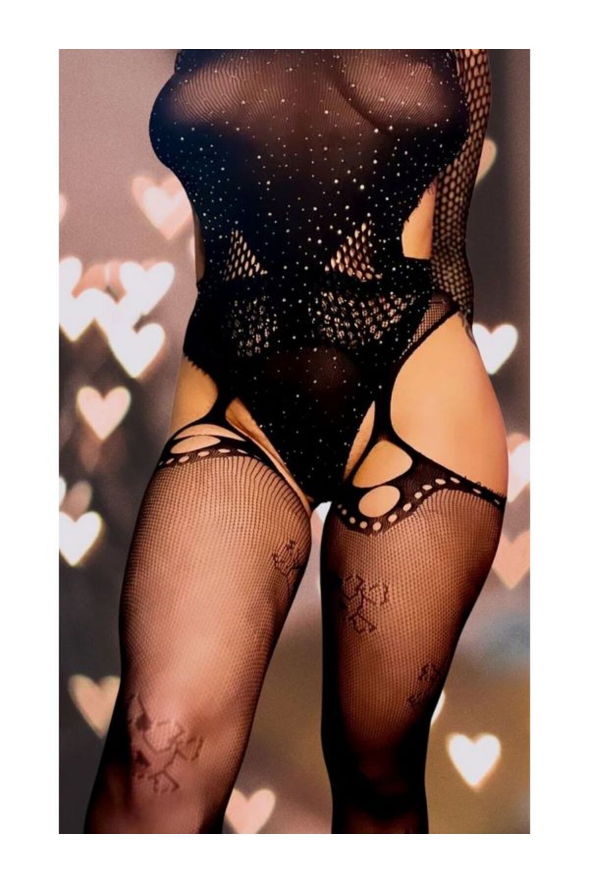 Derin Dekolteli, Işıltılı File Vücut Çorapı Derin Dekolteli, Işıltılı File Vücut Çorapı mis.01 XL