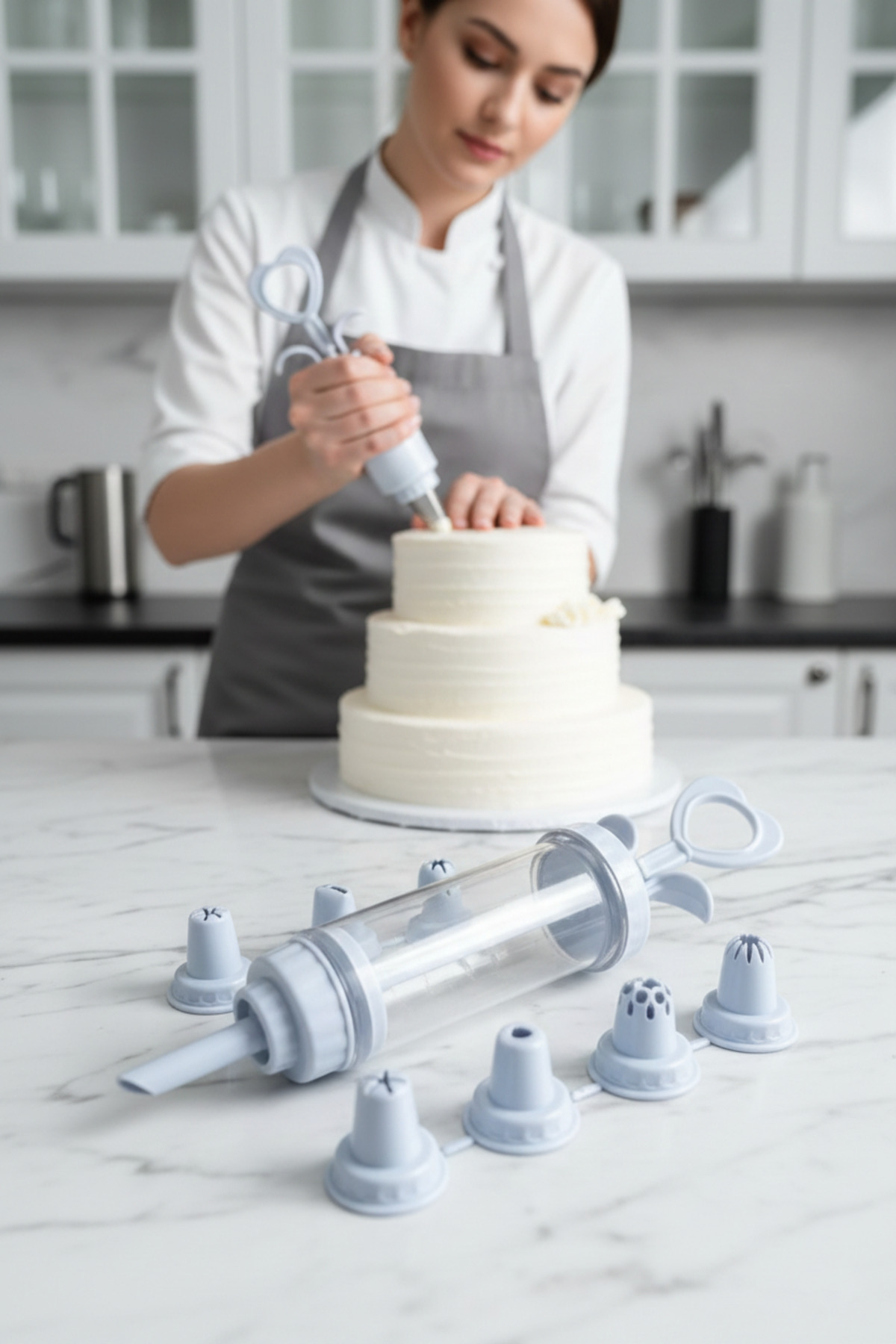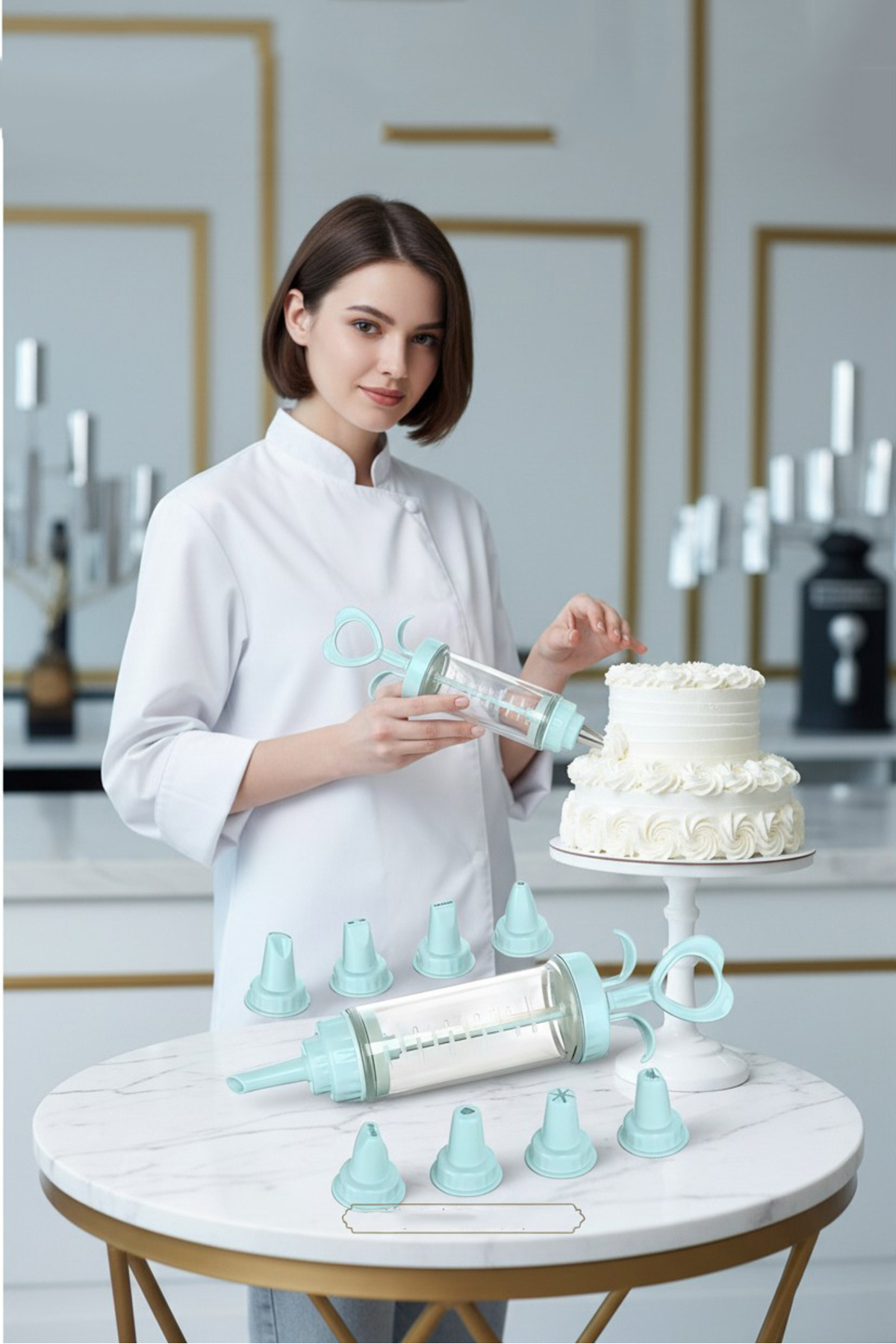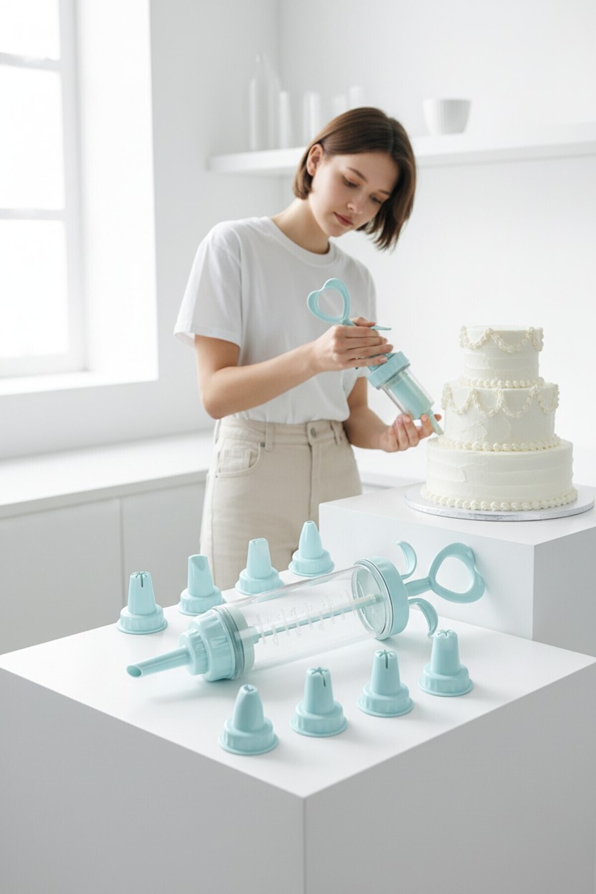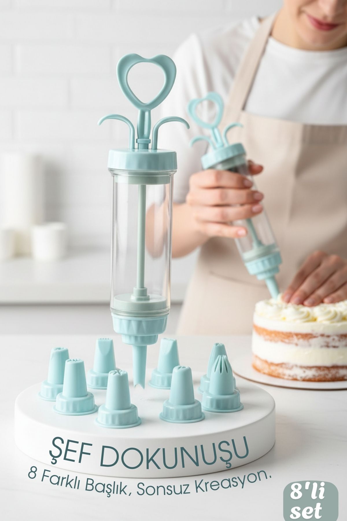 Profesyonel 8'li Başlıklı Pasta Krema Süsleme Pompası Seti Enjektör Uçlu 722555 Profesyonel 8'li Başlıklı Pasta Krema Süsleme Pompası Seti Enjektör Uçlu 722555 7430000722555 تک سایز