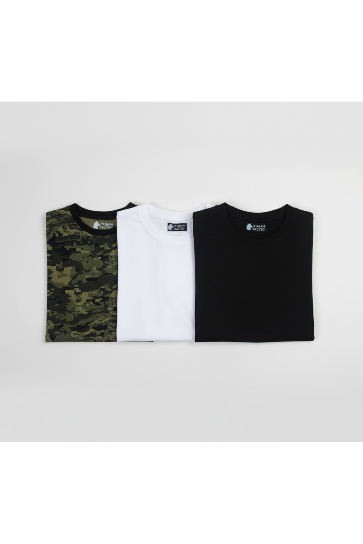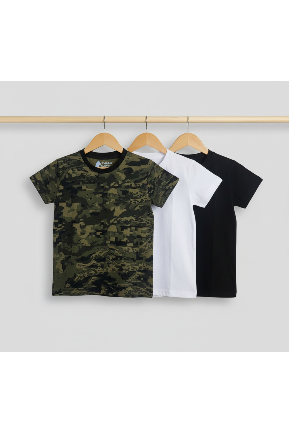 3'lü Çocuk Tişört Seti - %100 Pamuklu Penye - (Kamuflaj, Siyah, Beyaz) 3'lü Çocuk Tişört Seti - %100 Pamuklu Penye - (Kamuflaj, Siyah, Beyaz) 3lütş 3-4 Yaş