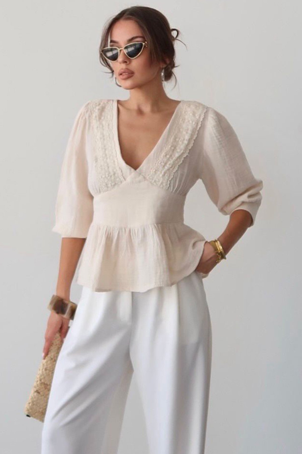 Kadın Krem V Yaka Dantel Detaylı Bluz Vs00387 Kadın Krem V Yaka Dantel Detaylı Bluz Vs00387 VS00387 L