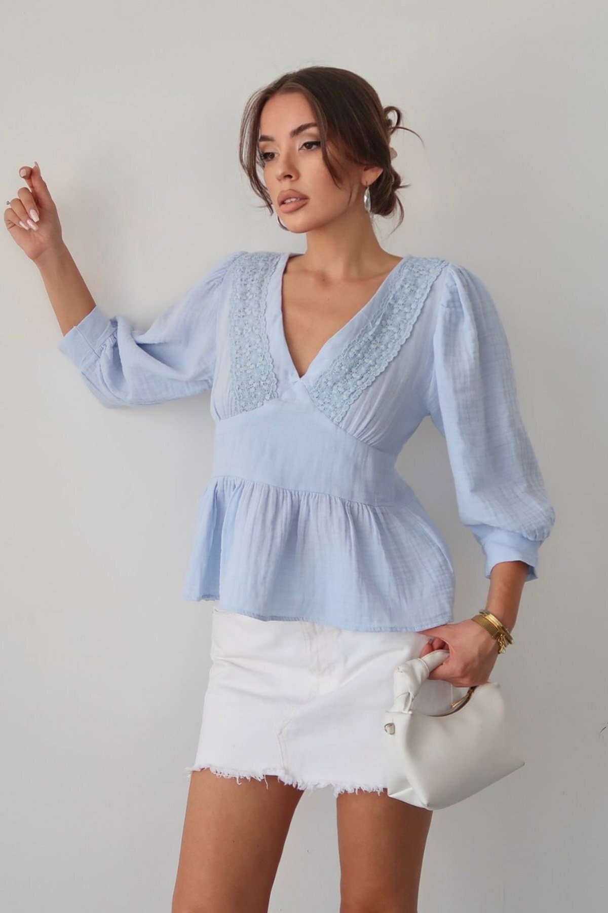 Kadın Mavi V Yaka Dantel Detaylı Bluz Vs00387 Kadın Mavi V Yaka Dantel Detaylı Bluz Vs00387 VS00387 L