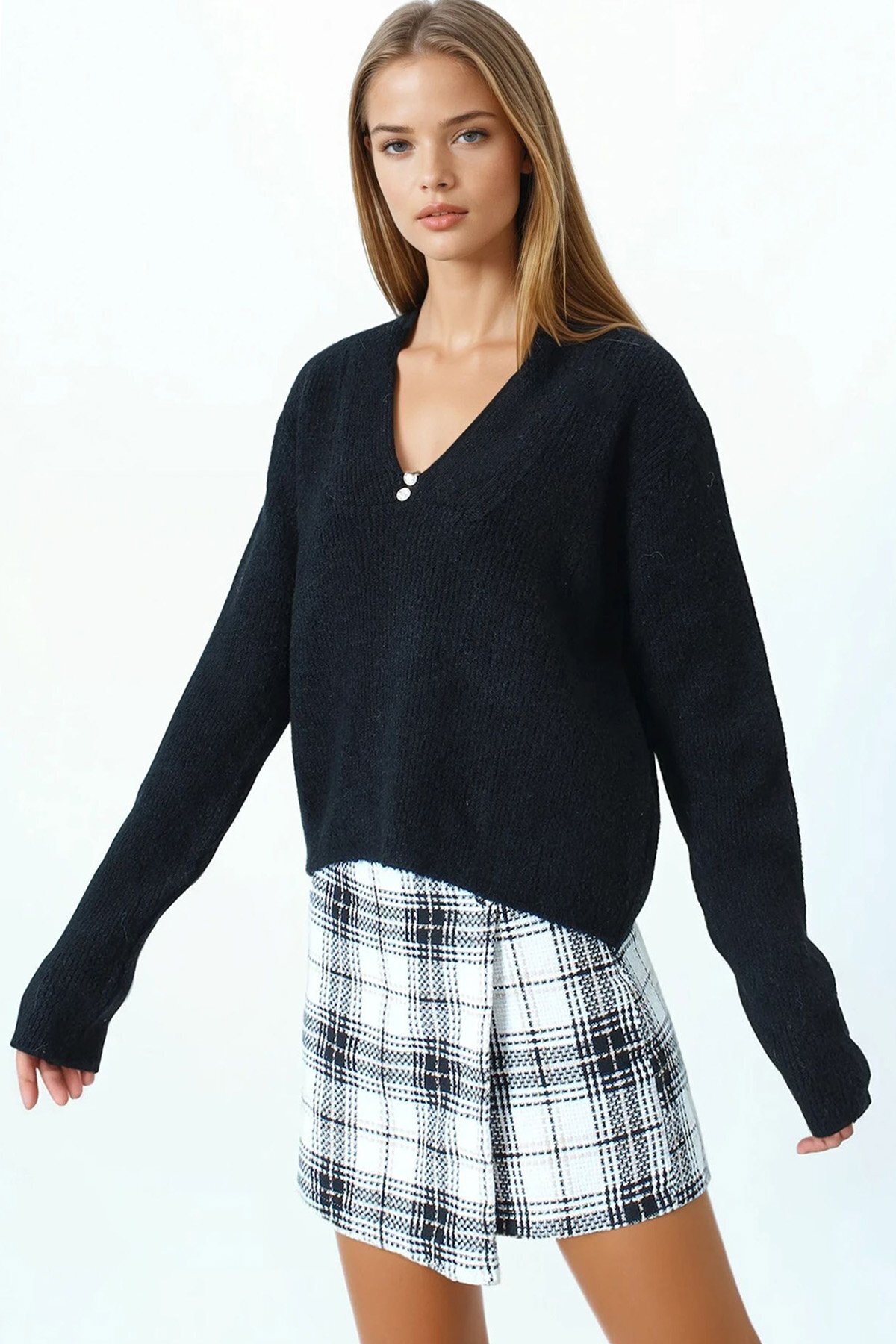 Kadın Siyah Aksesuar Detaylı V Yaka Uzun Kollu Triko Bluz Vs01059 Kadın Siyah Aksesuar Detaylı V Yaka Uzun Kollu Triko Bluz Vs01059 VS01059 تک سایز