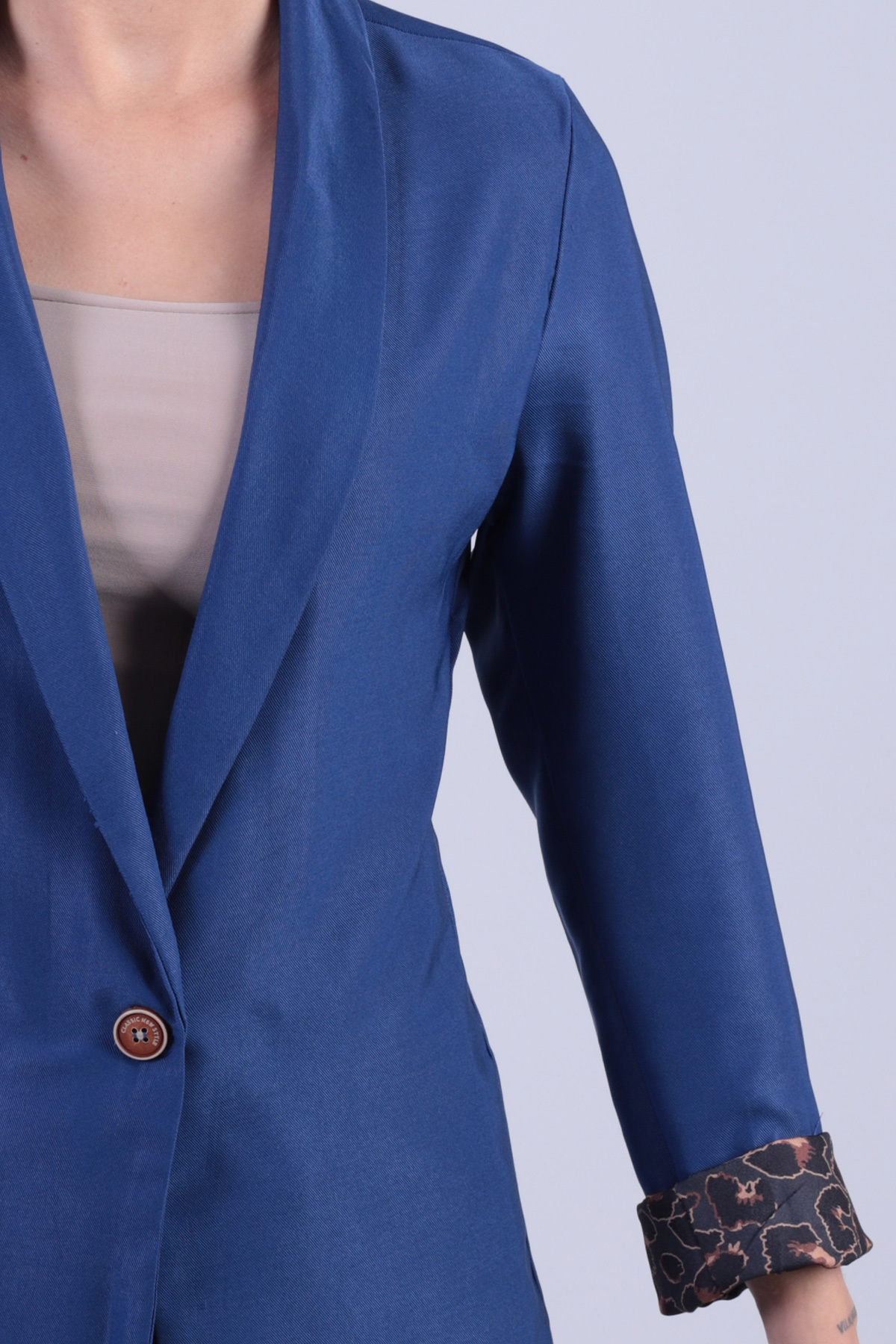 Kadın Koyu Mavi Kol İçi Leopar Desenli Tek Düğmeli Ceket ARM-26K001088 Kadın Koyu Mavi Kol İçi Leopar Desenli Tek Düğmeli Ceket ARM-26K001088 XL