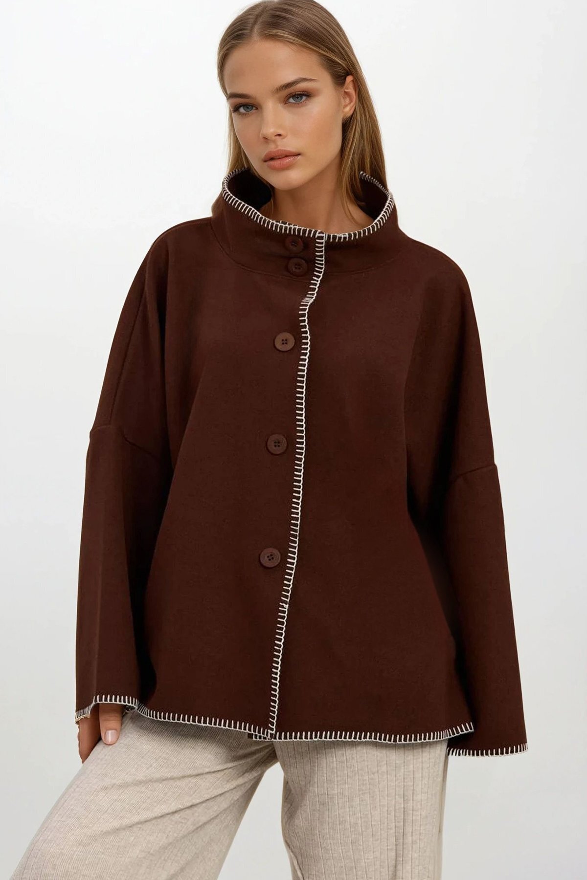 Kadın Bej Düğmeli Geniş Kollu Kontrast Dikişli Yırtmaçlı Kaban Vs01673 Kadın Bej Düğmeli Geniş Kollu Kontrast Dikişli Yırtmaçlı Kaban Vs01673 VS01673 L
