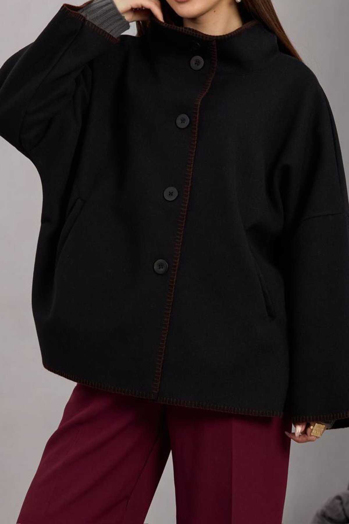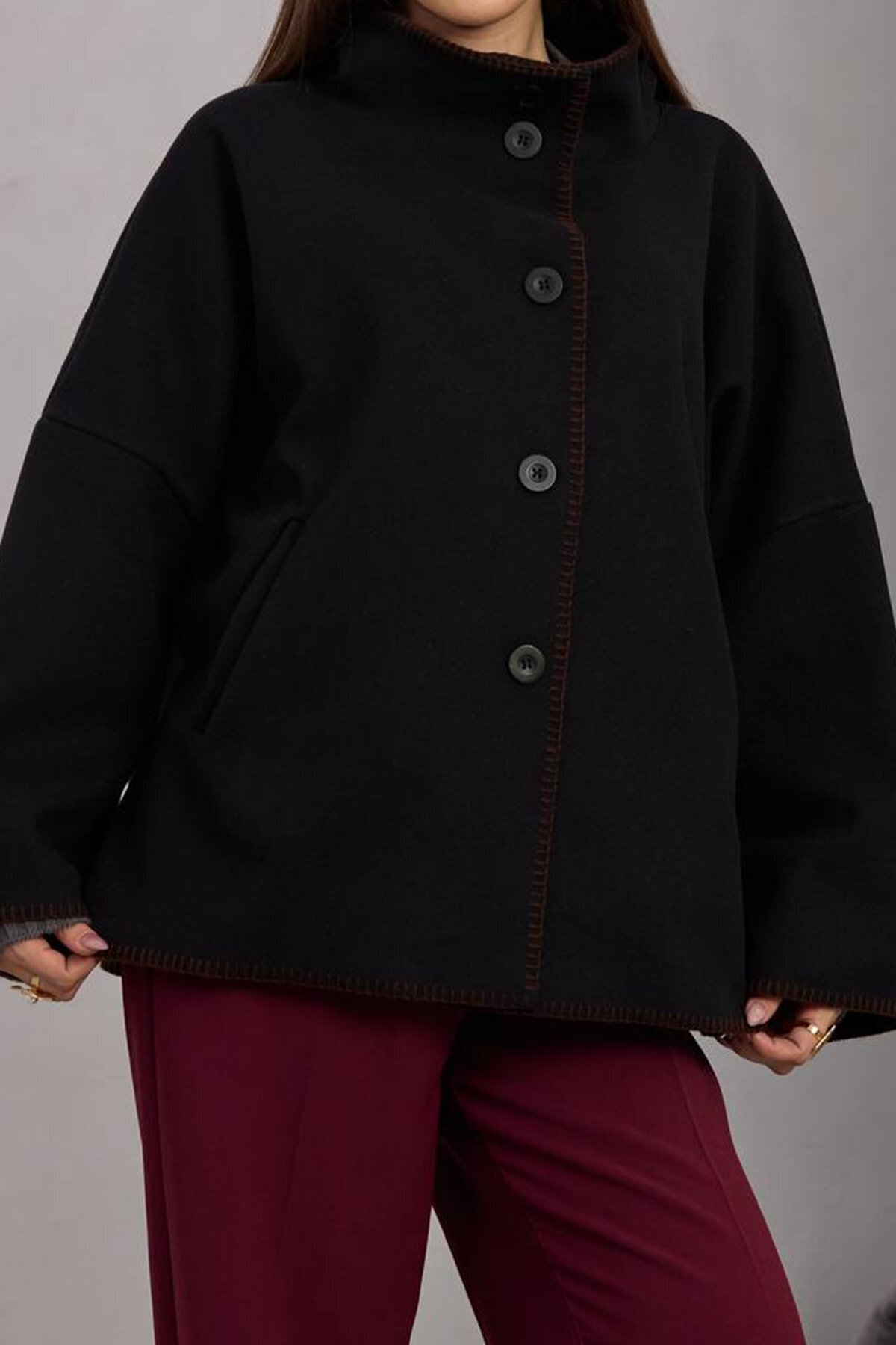 Kadın Siyah Düğmeli Geniş Kollu Kontrast Dikişli Yırtmaçlı Kaban Vs01673 Kadın Siyah Düğmeli Geniş Kollu Kontrast Dikişli Yırtmaçlı Kaban Vs01673 VS01673 L