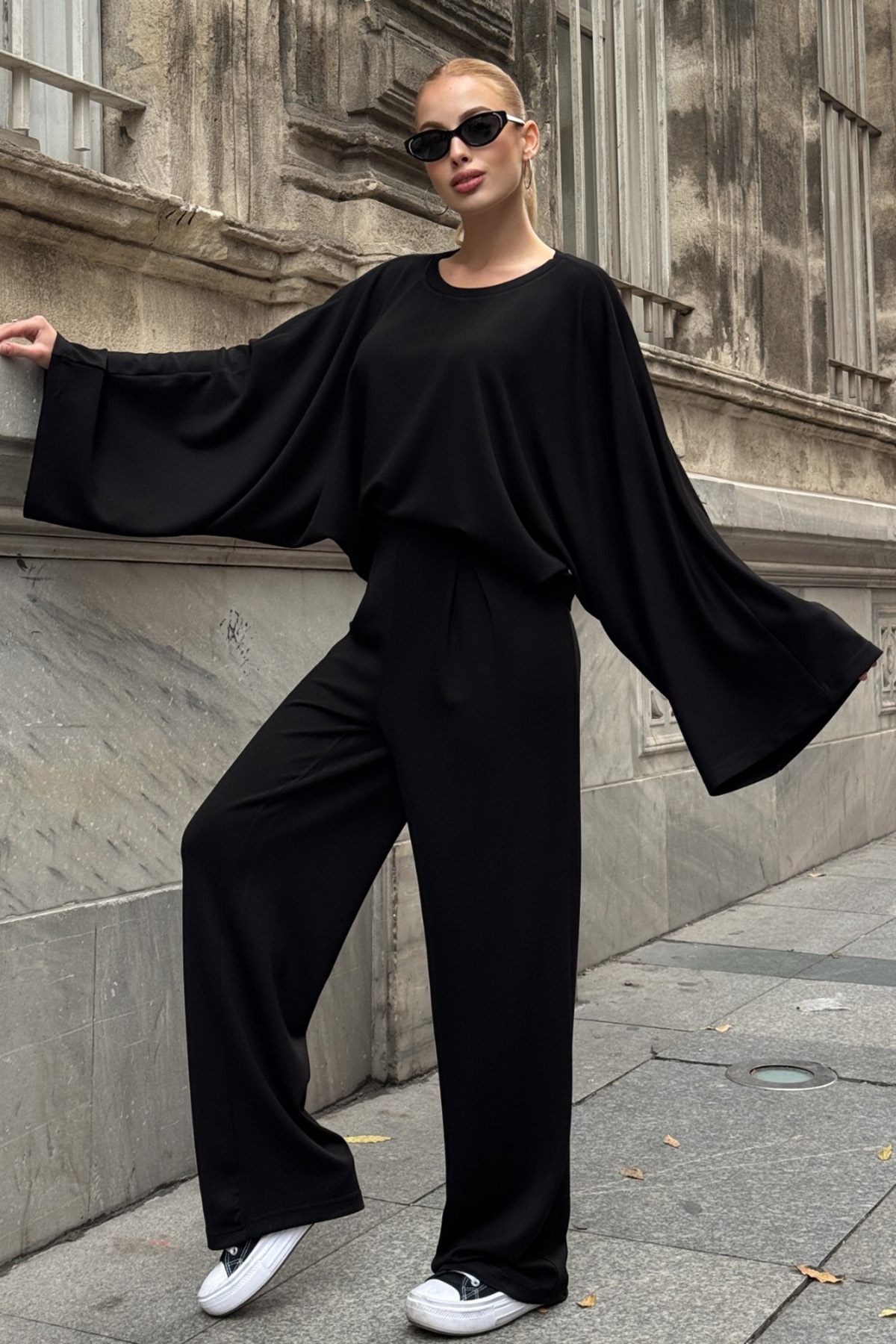 Kadın Siyah Geniş Kol Detaylı Oversize İkili Takım Vs01583 Kadın Siyah Geniş Kol Detaylı Oversize İkili Takım Vs01583 VS01583 42