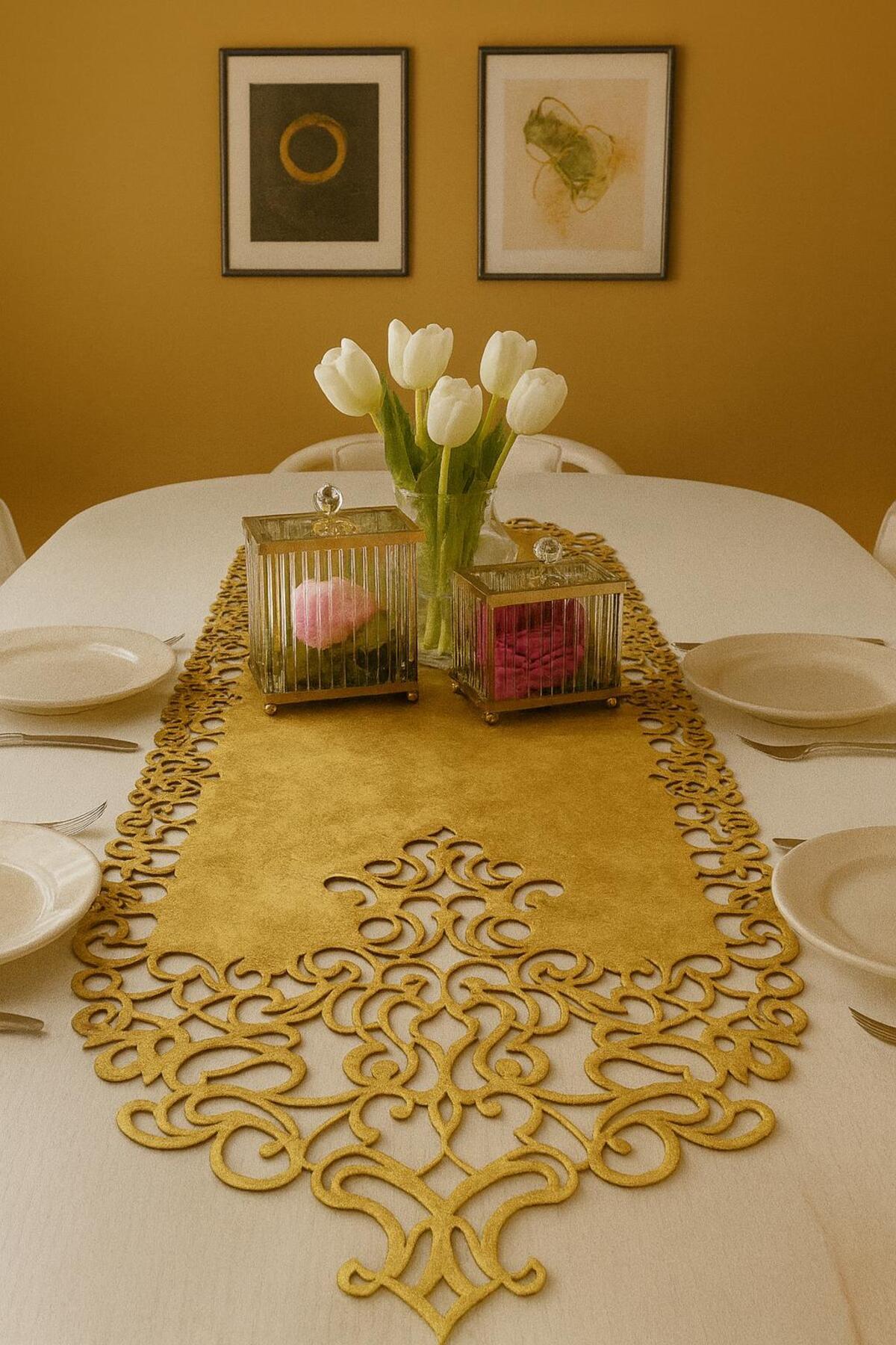 1 Adet Runner/ranır 100x32cm/suni Deri/varaklı Gold (2 YAPRAK,2 ÇİÇEK MOTİFİ HEDİYE) 1 Adet Runner/ranır 100x32cm/suni Deri/varaklı Gold (2 YAPRAK,2 ÇİÇEK MOTİFİ HEDİYE) BYKZRN تک سایز