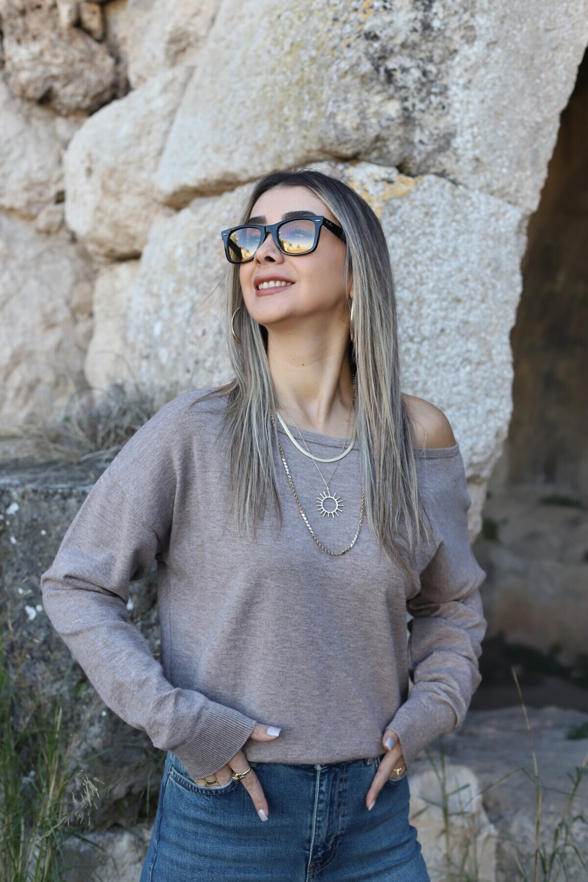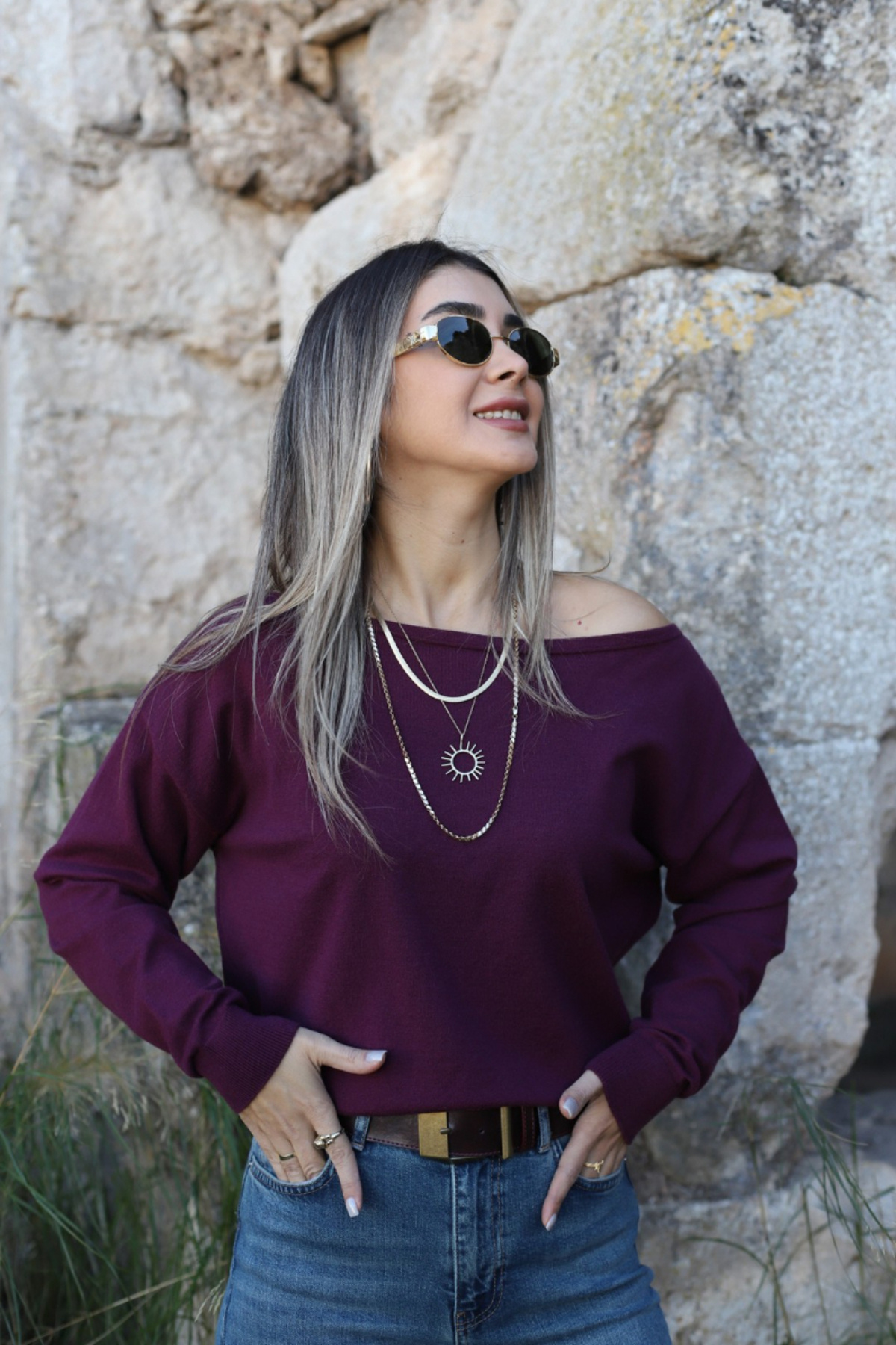 Mürdüm Standart Beden Tek Omzu Açık Triko Kazak Mürdüm Standart Beden Tek Omzu Açık Triko Kazak P4746S3986 Standart