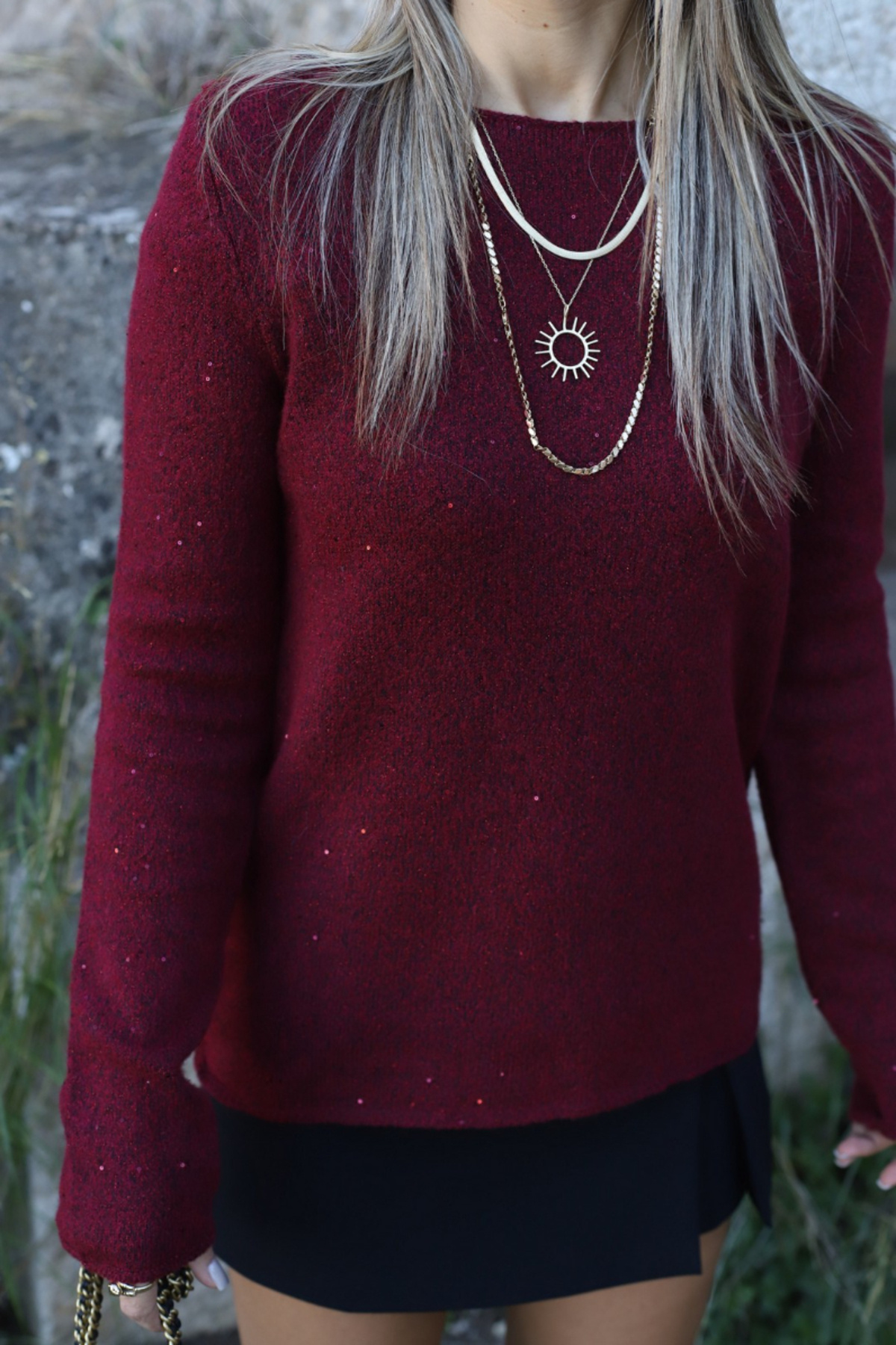 Bordo Standart Beden Kayık Yaka Pullu Simli Kazak Bordo Standart Beden Kayık Yaka Pullu Simli Kazak P4701S1096 Standart