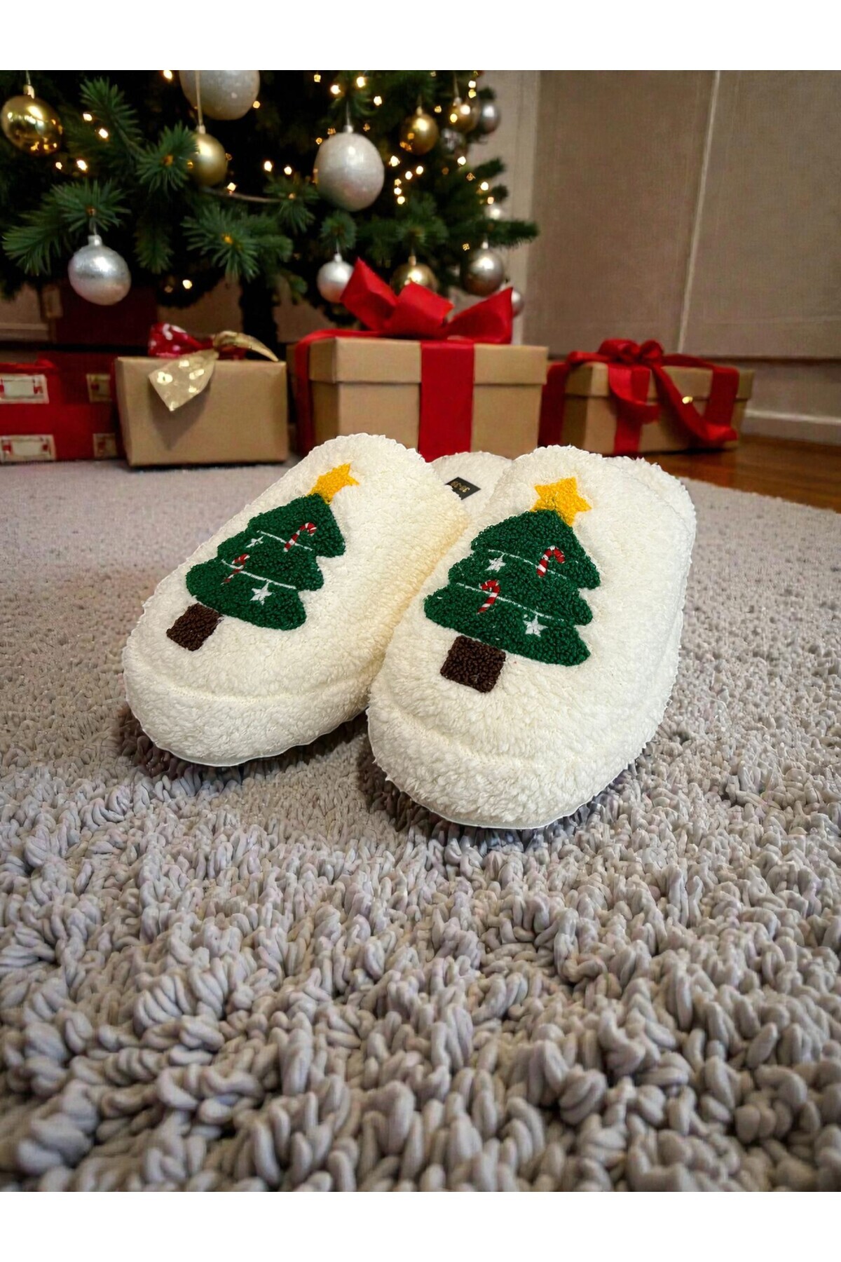 Yılbaşı Temalı Ağaç Desenli Peluş Ev Terliği Yılbaşı Temalı Ağaç Desenli Peluş Ev Terliği TrendalyaTrlk001 40-41