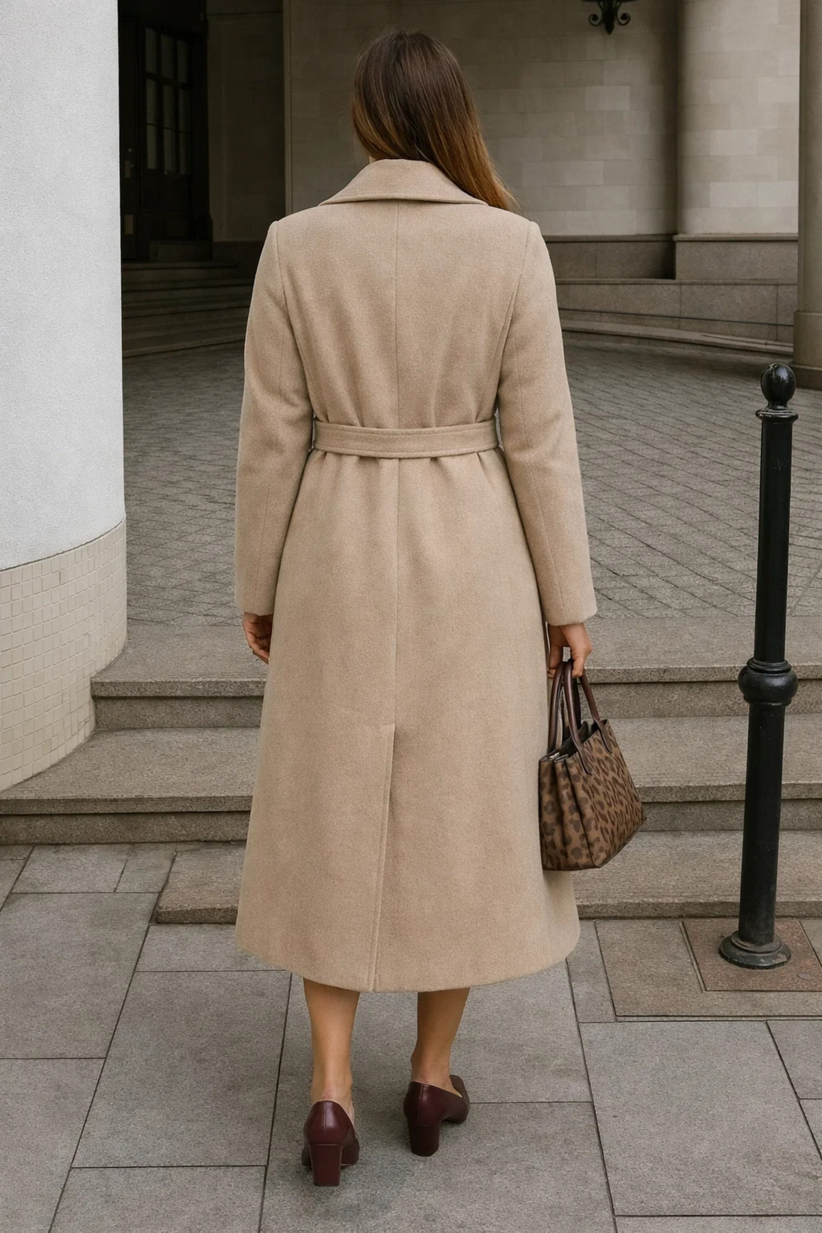 Kadın Kışlık Kuşaklı Uzun Kruvaze Bej Kaşe Kaban Kadın Kışlık Kuşaklı Uzun Kruvaze Bej Kaşe Kaban Ayna-2-Kaşekabanastarsız 44