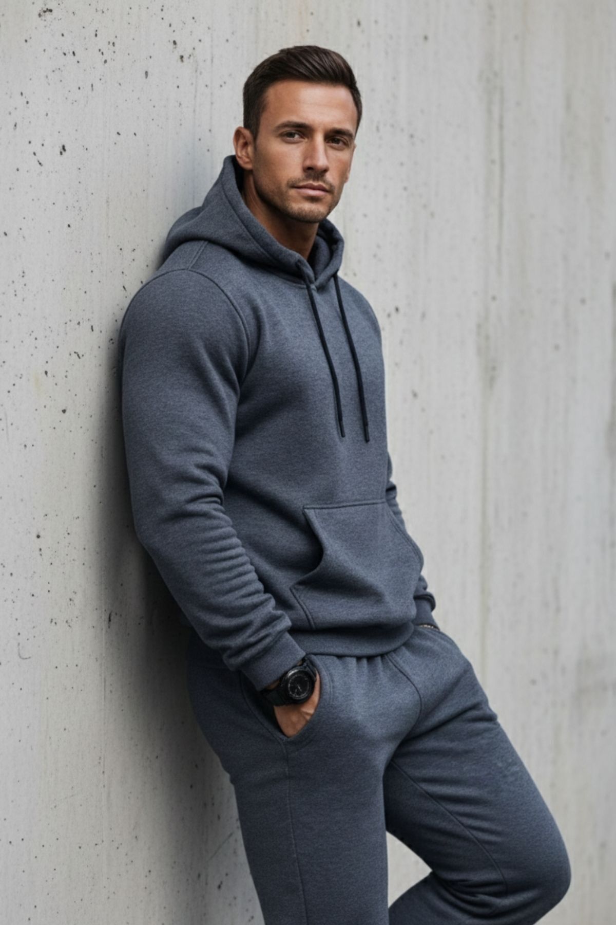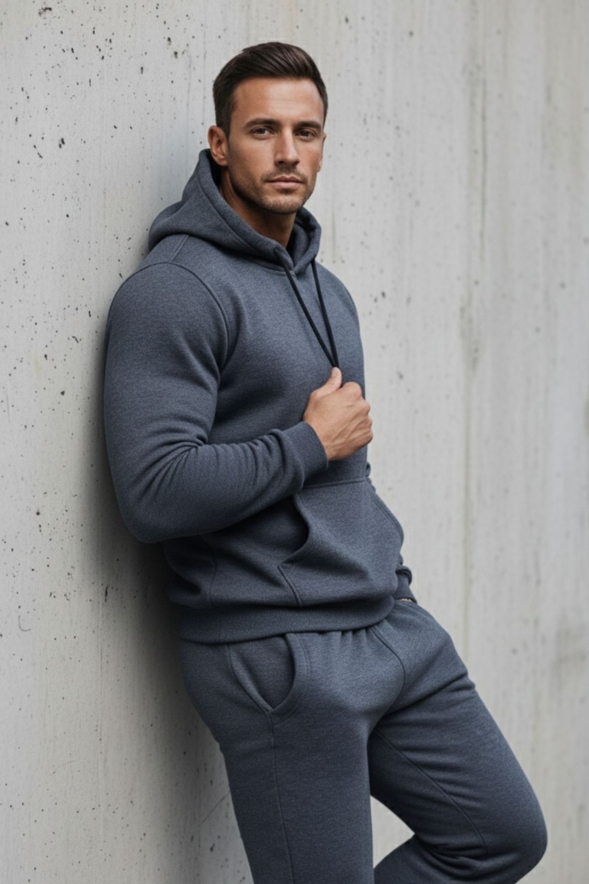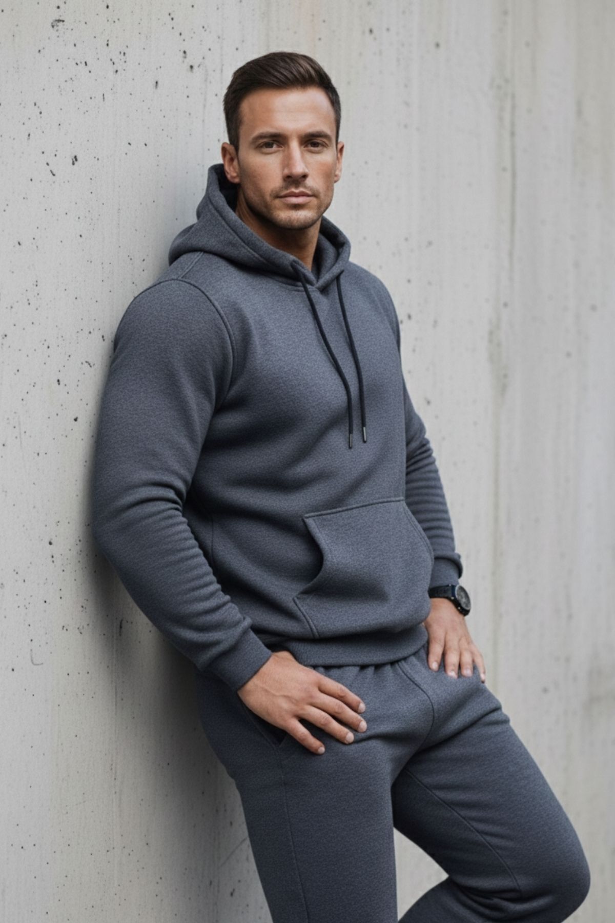 Erkek Kanguru Cepli Füme Kapşonlu Sweatshirt Erkek Kanguru Cepli Füme Kapşonlu Sweatshirt 77824DMJG 6XL