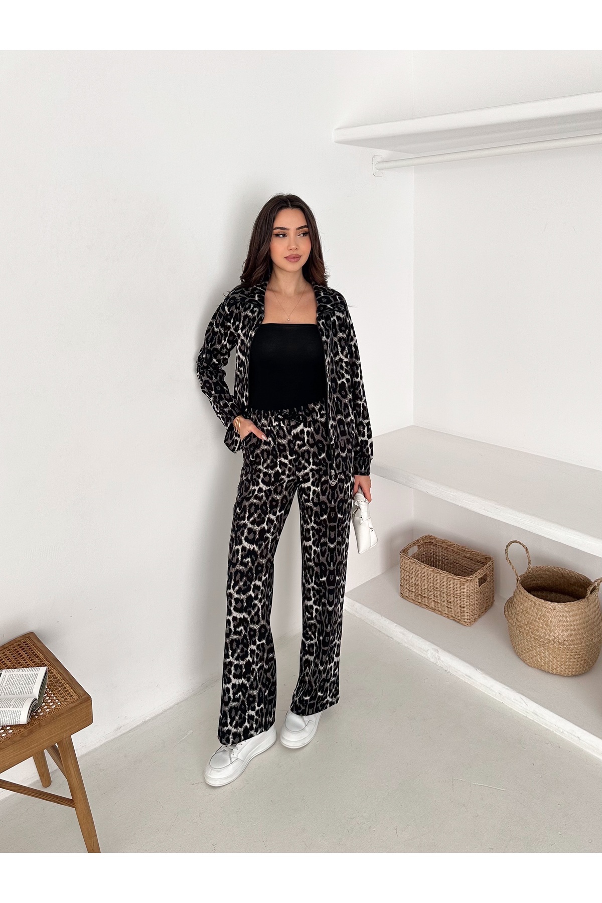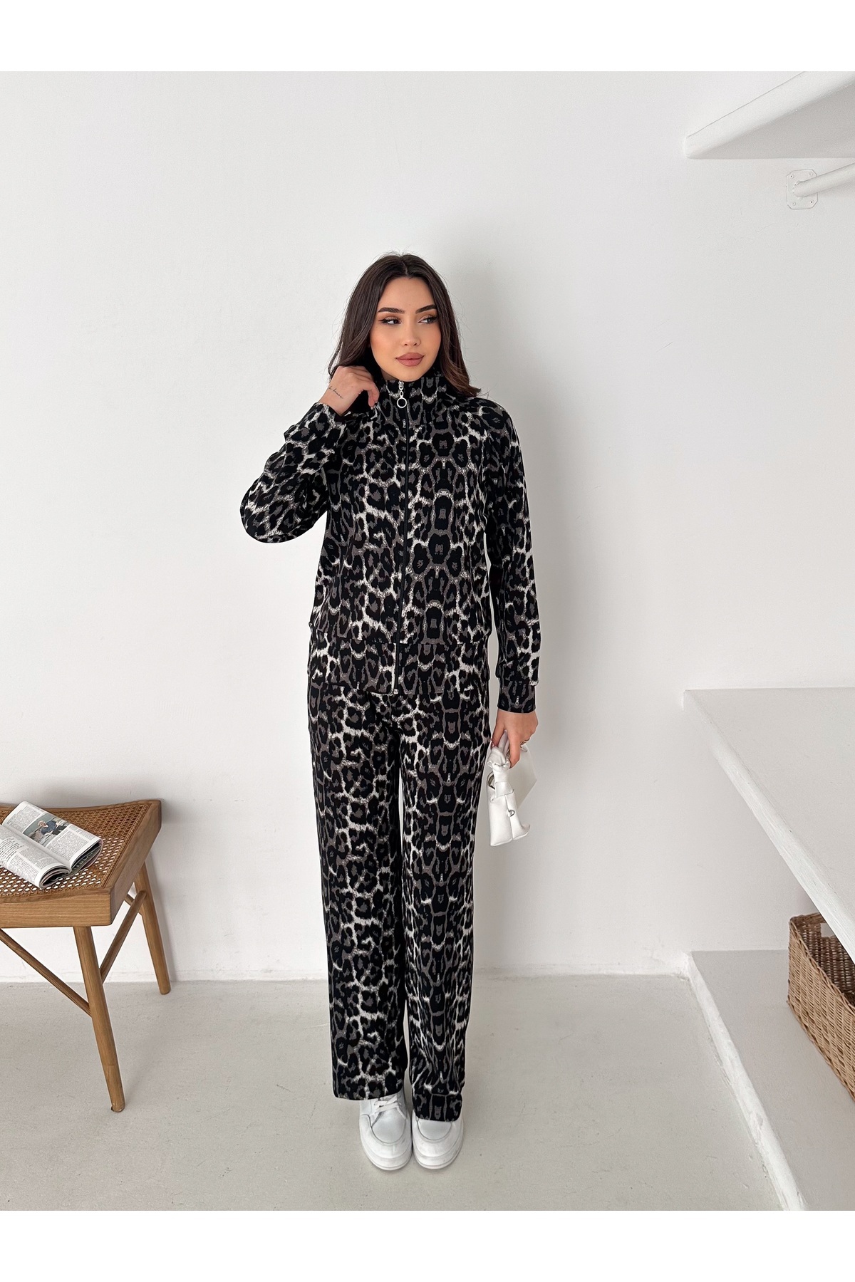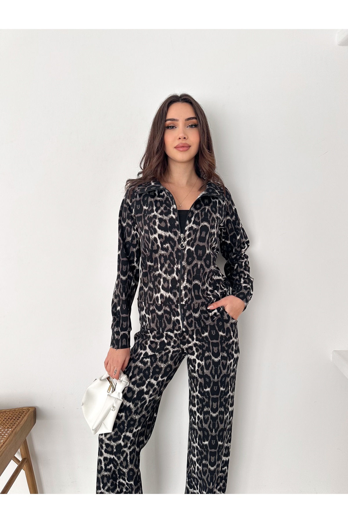 Kadın Leopar Desenli Fermuarlı Genis Paça Eşofman Takımı Kadın Leopar Desenli Fermuarlı Genis Paça Eşofman Takımı leo8547 XL