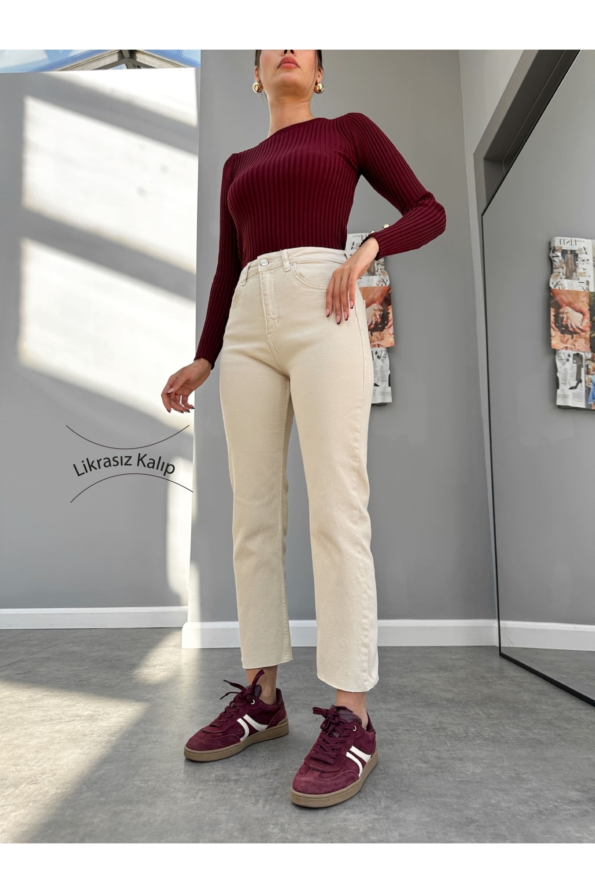 Kadın Bej Paçası Kesik Likralı Pantolon Kadın Bej Paçası Kesik Likralı Pantolon SZBTK2 XL