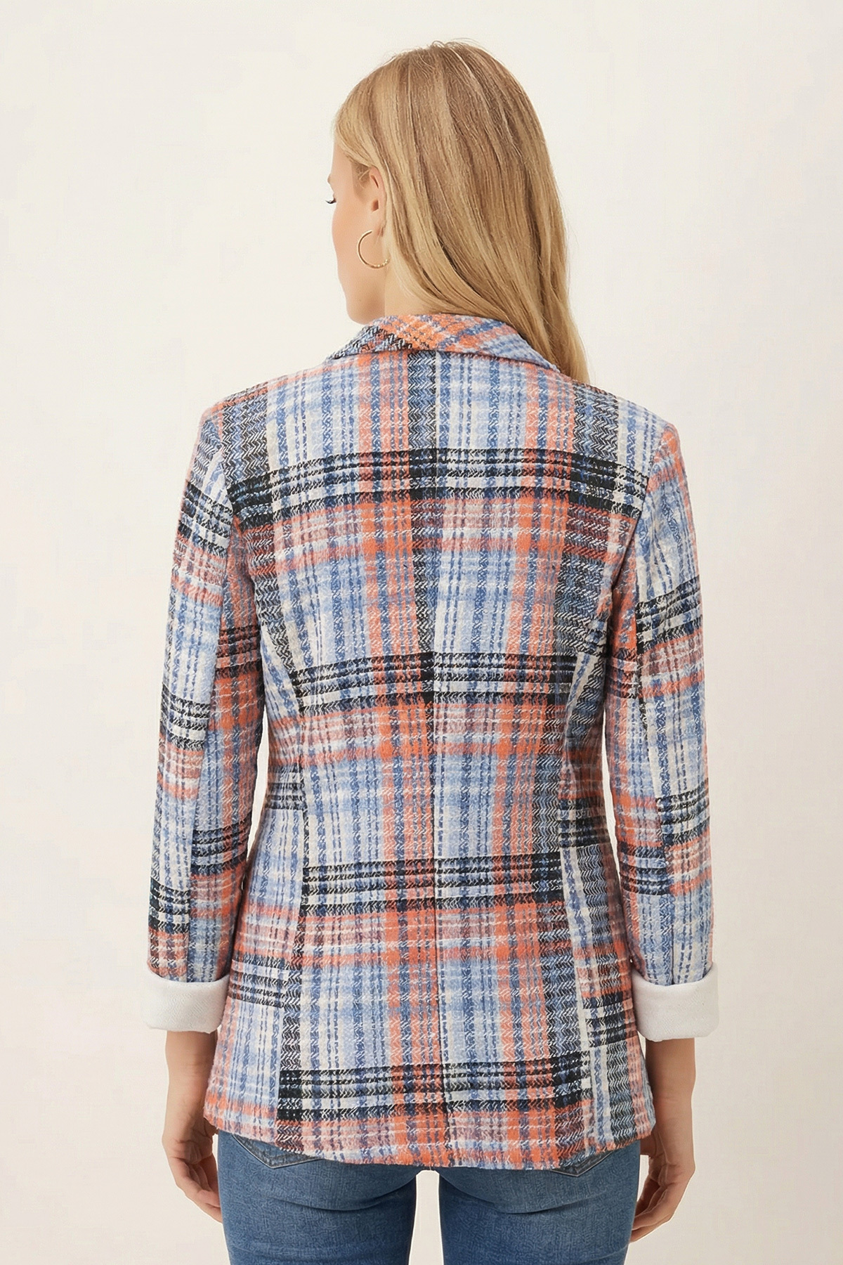Kadın Saks Şal Yaka Kolları Garnili Tek Düğme Ceket ARM-26K001087 Kadın Saks Şal Yaka Kolları Garnili Tek Düğme Ceket ARM-26K001087 XL