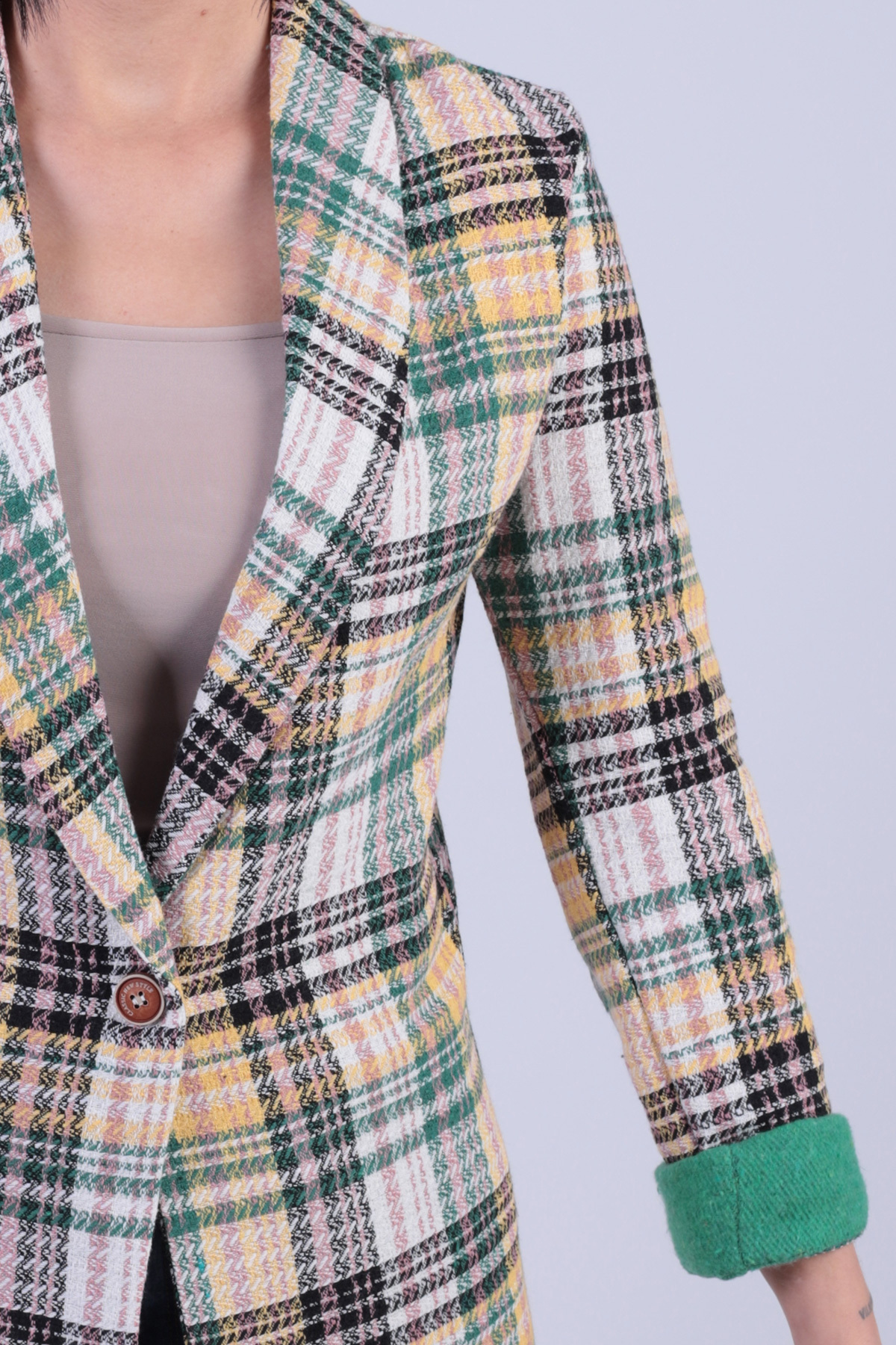 Kadın Sarı-Yeşil Şal Yaka Kolları Garnili Tek Düğme Ceket ARM-26K001087 Kadın Sarı-Yeşil Şal Yaka Kolları Garnili Tek Düğme Ceket ARM-26K001087 XL