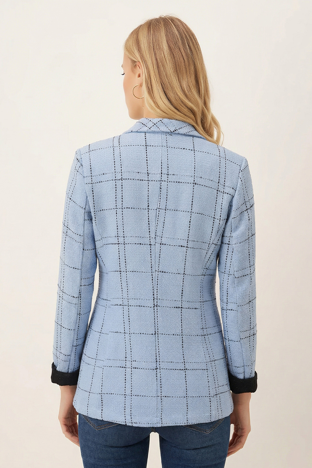 Kadın Mavi Şal Yaka Kolları Garnili Tek Düğme Ceket ARM-26K001087 Kadın Mavi Şal Yaka Kolları Garnili Tek Düğme Ceket ARM-26K001087 XL
