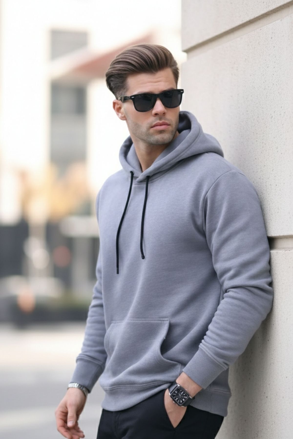 Erkek Casual Kanguru Cepli Bol Gri Sweatshirt Erkek Casual Kanguru Cepli Bol Gri Sweatshirt 77824DMJG-3 6XL