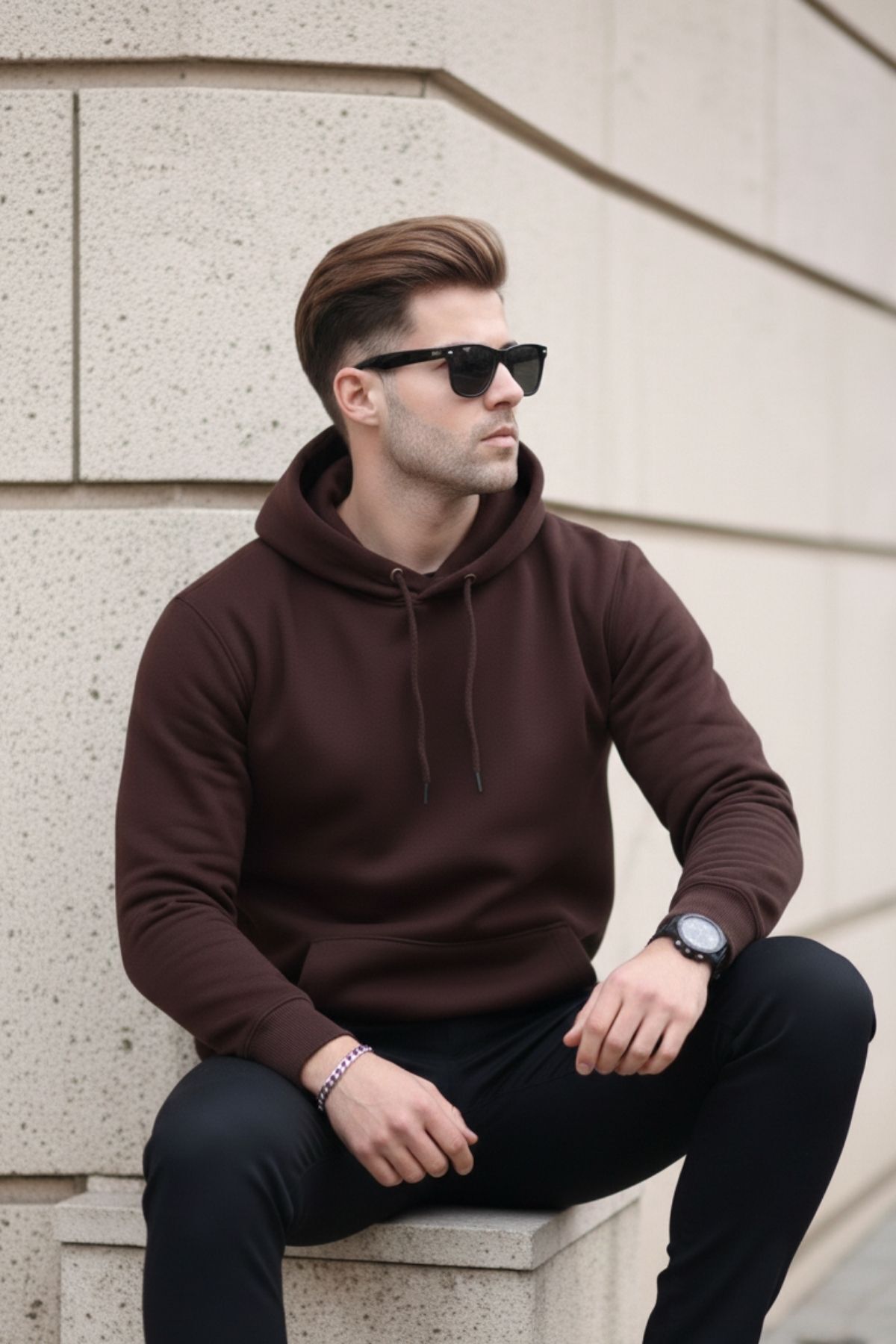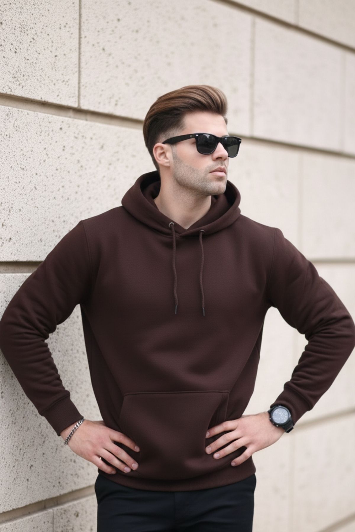 Erkek Casual Kanguru Cepli Bol Kahve Sweatshirt Erkek Casual Kanguru Cepli Bol Kahve Sweatshirt 77824DMJG-3 6XL