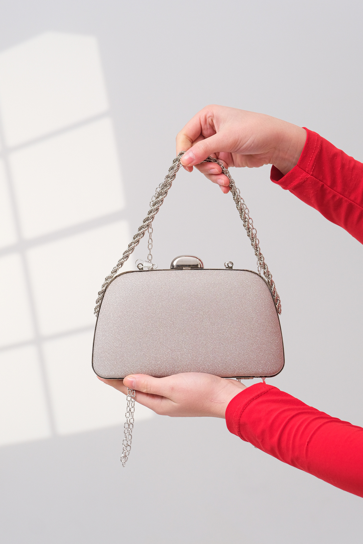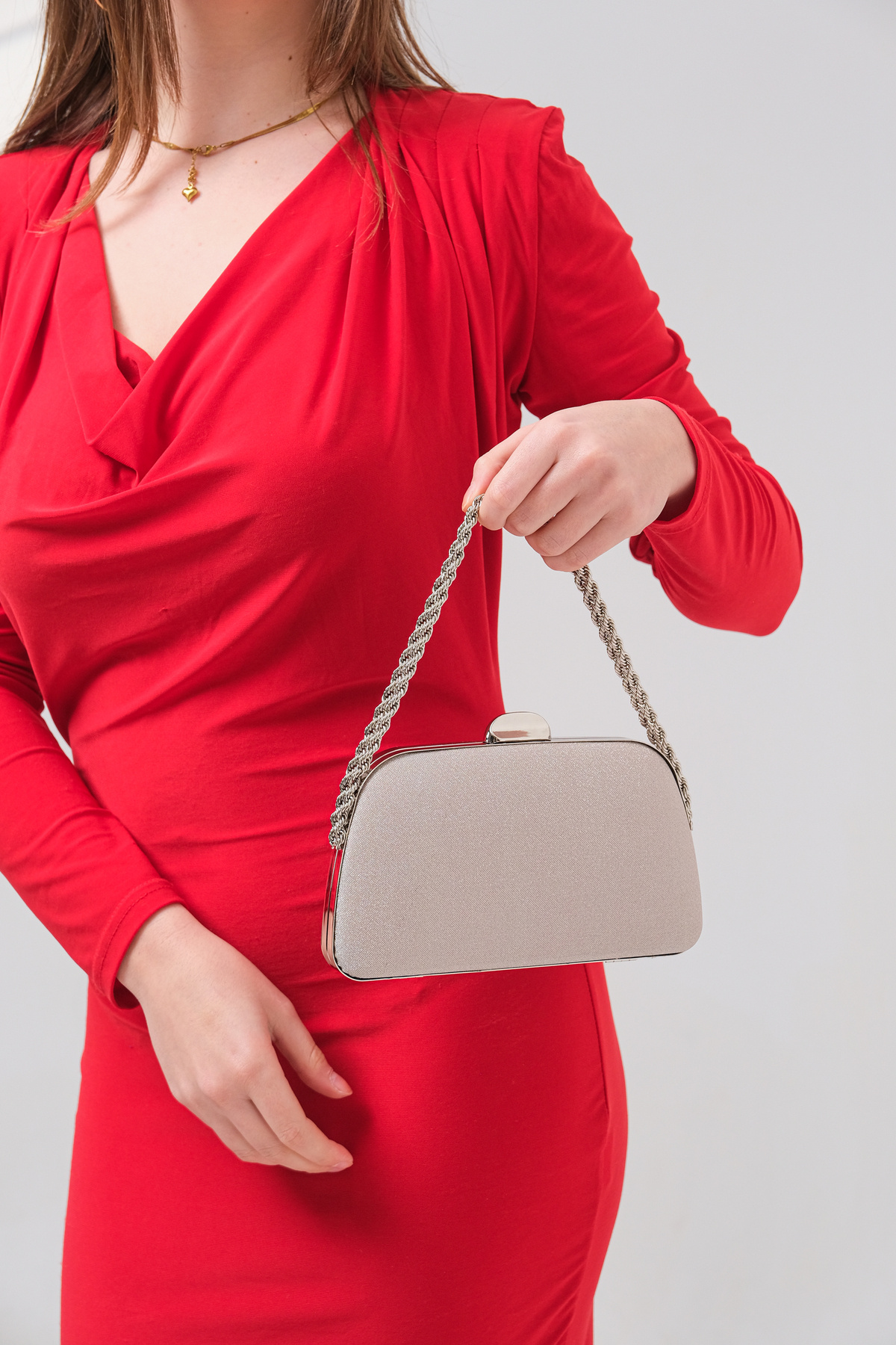 Altın Simli Zincir Askılı El Omuz Abiye Dügün Gece Çantası Altın Simli Zincir Askılı El Omuz Abiye Dügün Gece Çantası RZ-0219 تک سایز