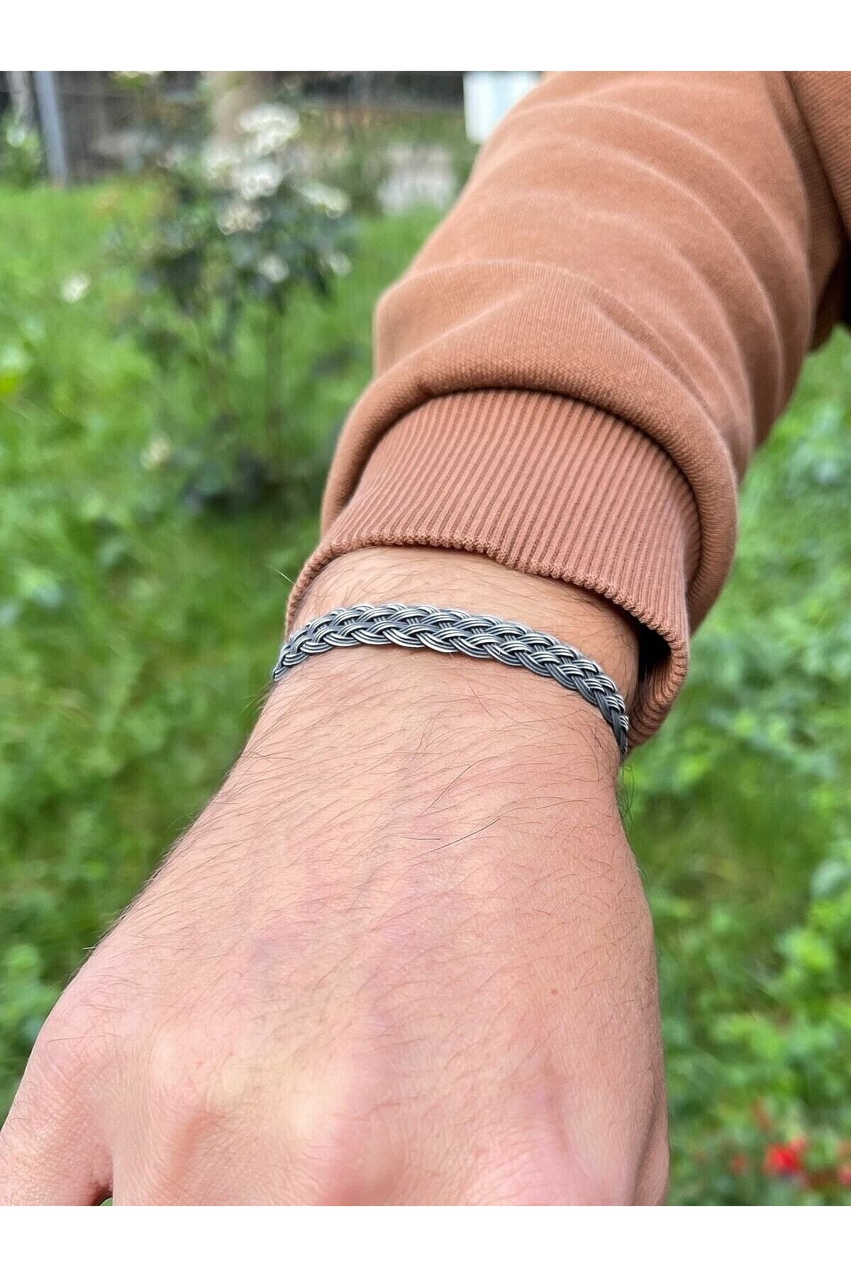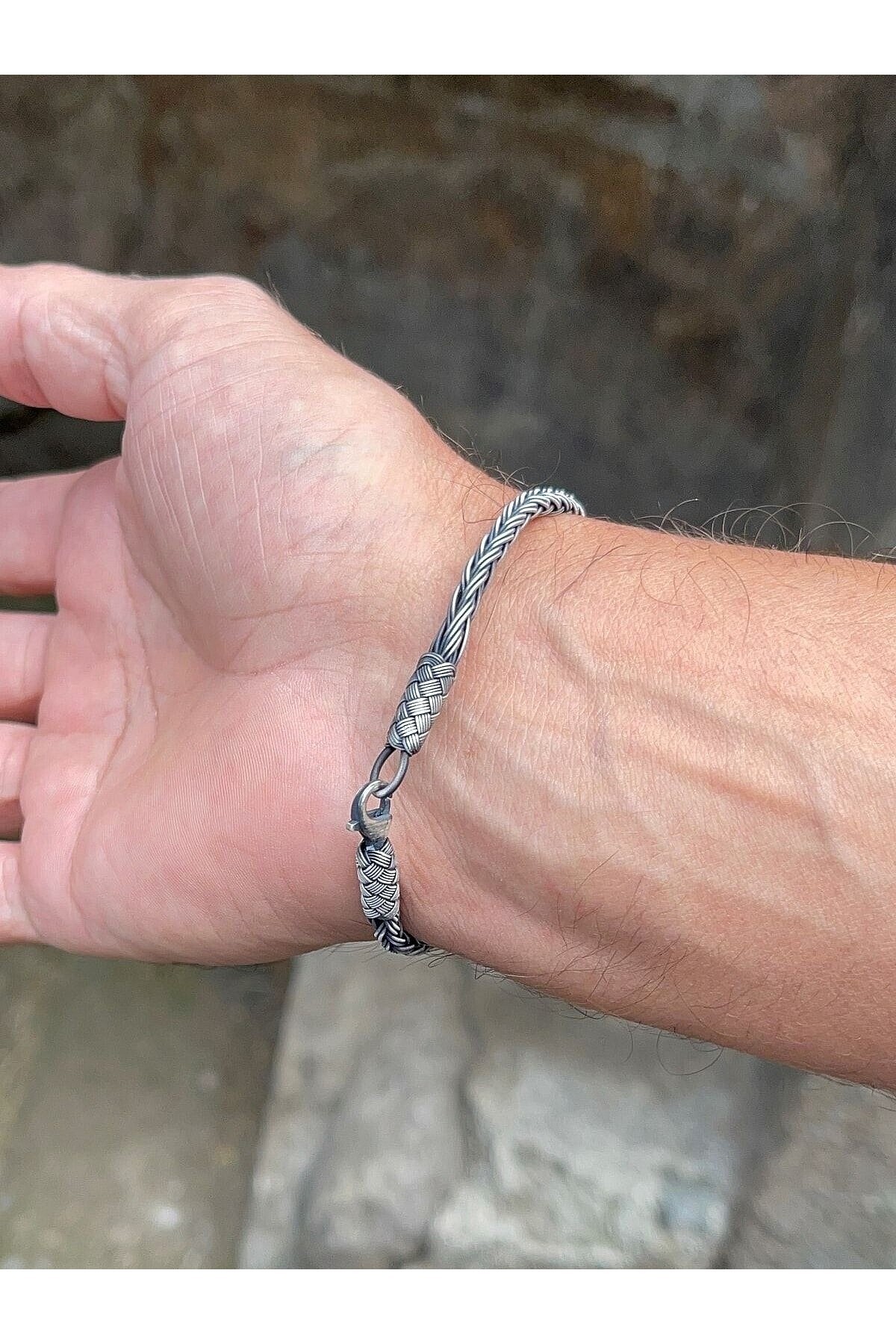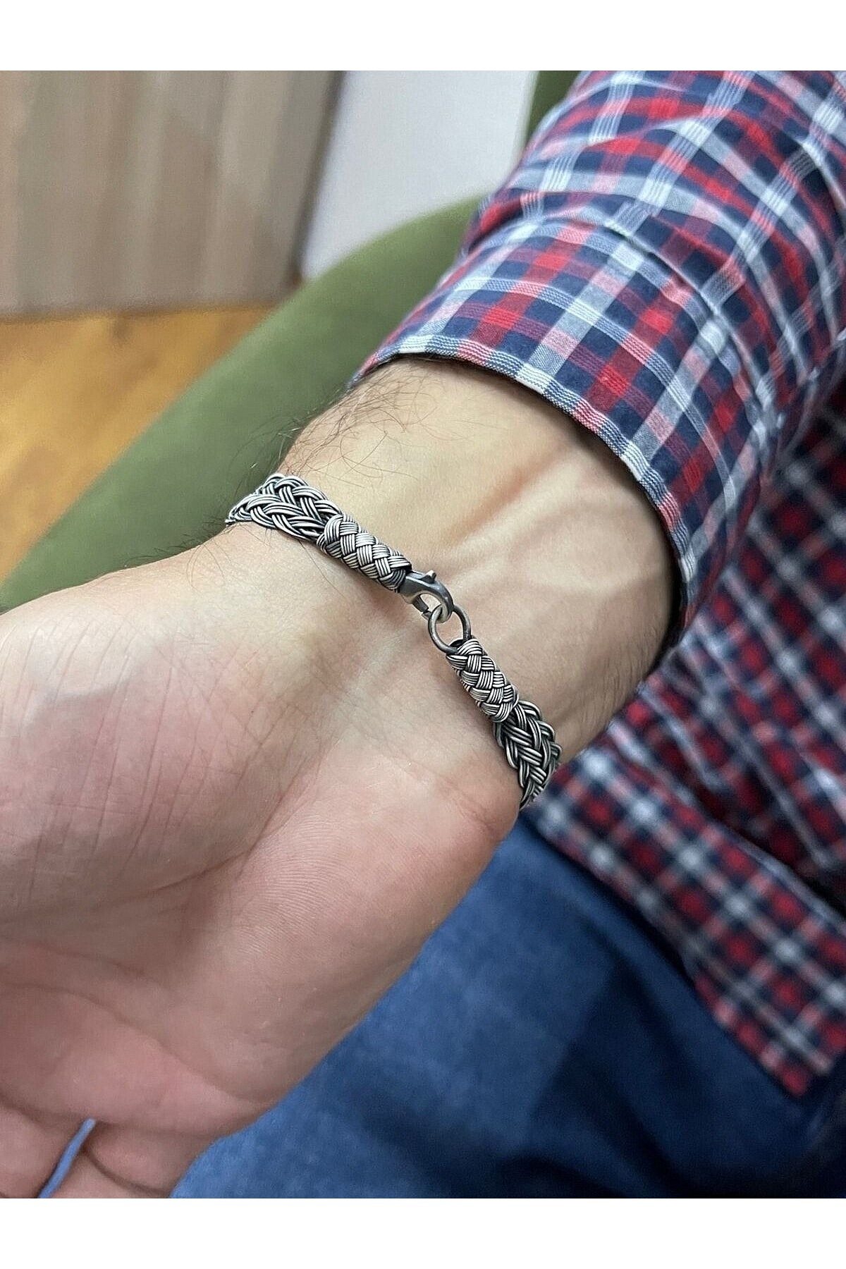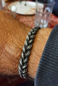 Gümüş Kazaziye Oksitli Örgü Bileklik Bıl018sı Gümüş Kazaziye Oksitli Örgü Bileklik Bıl018sı BIL018 21 cm