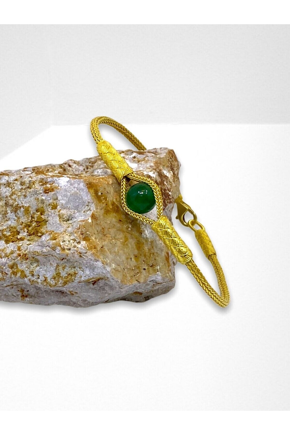 Doğal Taş Detaylı Altın Yaldız Kaplama Bileklik Turkuaz Doğal Taş Detaylı Altın Yaldız Kaplama Bileklik Turkuaz BIL040YA 19 cm