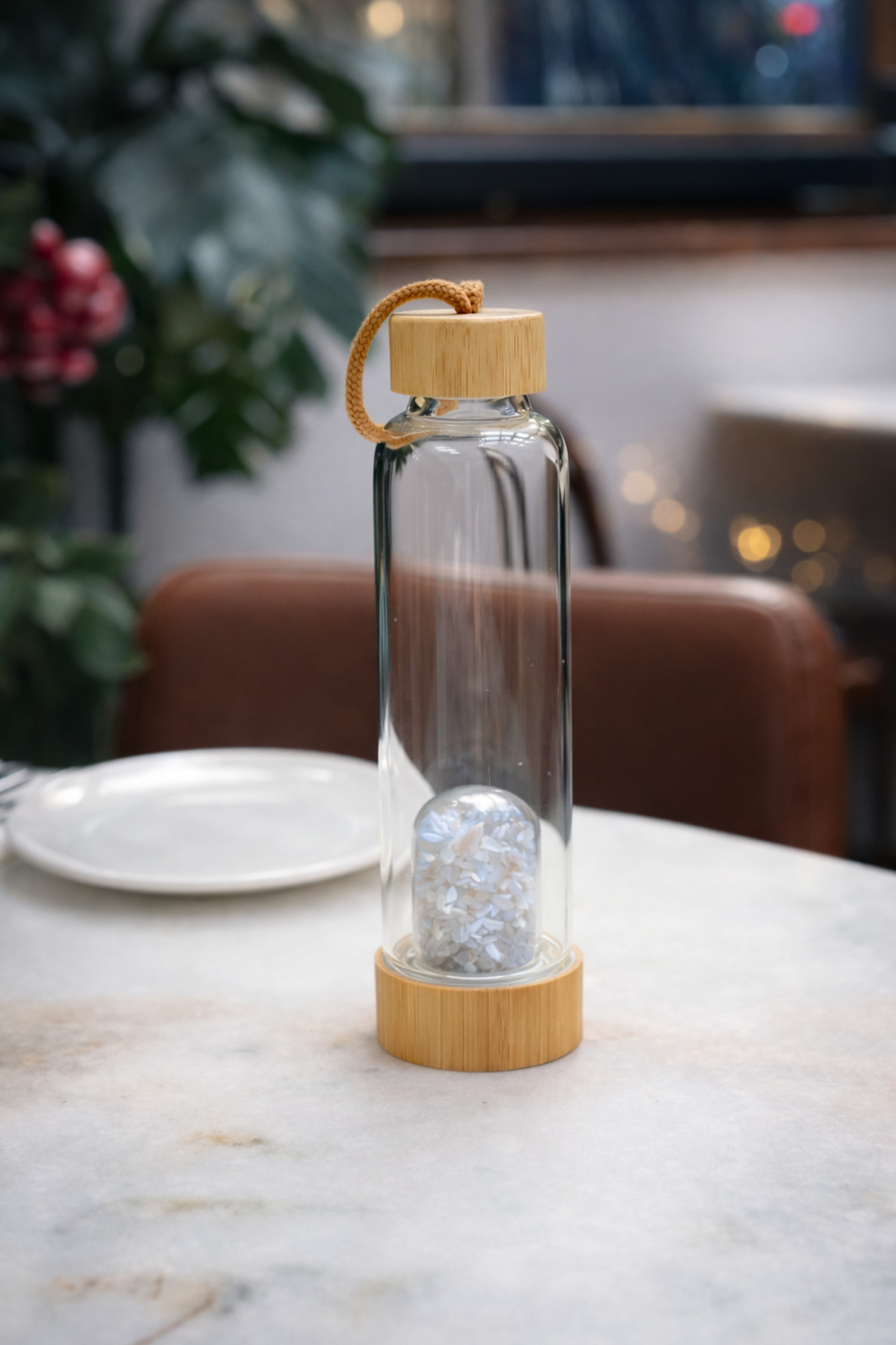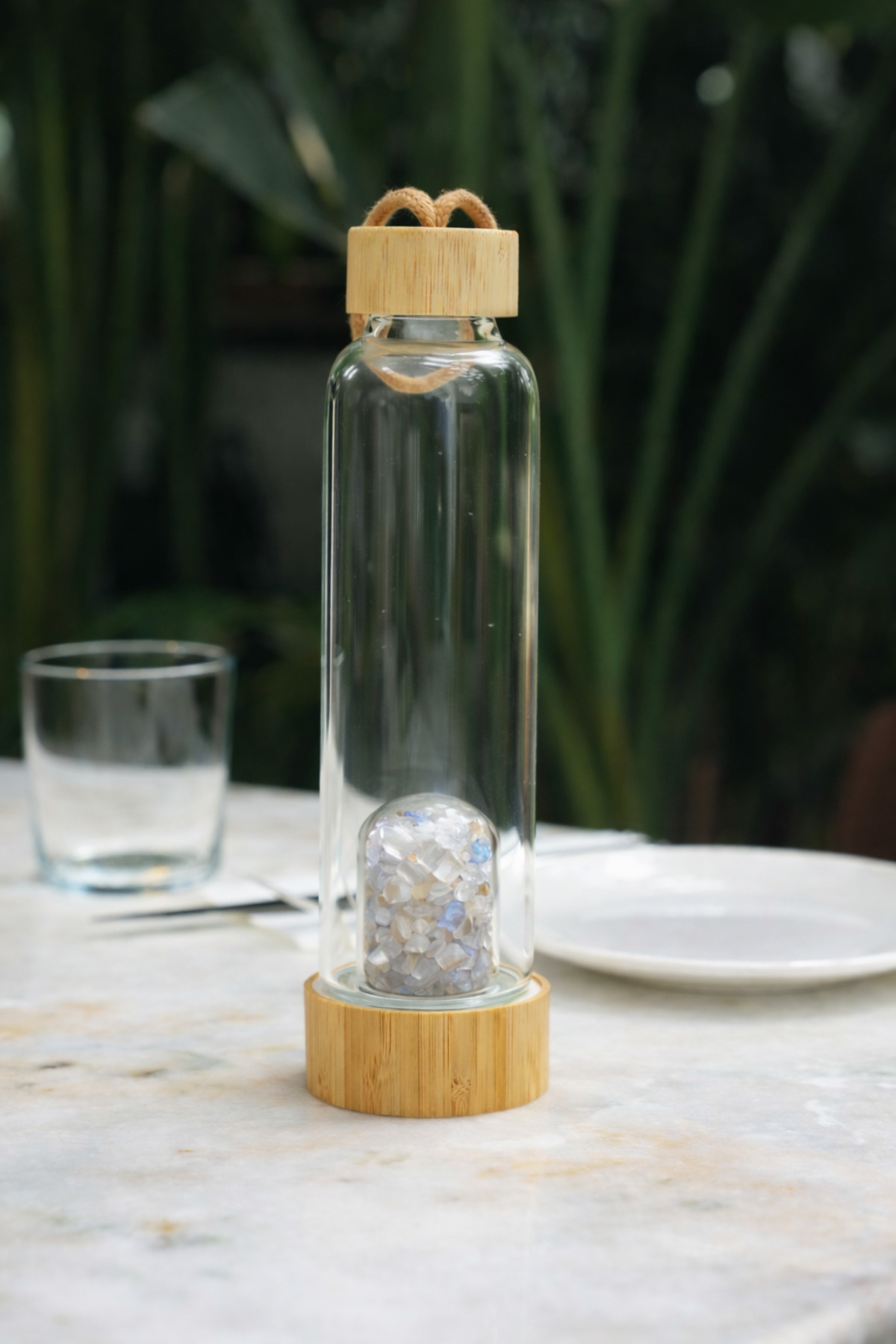 Ay Taşı Doğal Taş Bambu Kapaklı Cam Su Matarası - 550 ml - Özel Kılıflı Ay Taşı Doğal Taş Bambu Kapaklı Cam Su Matarası - 550 ml - Özel Kılıflı OMSM04 تک سایز