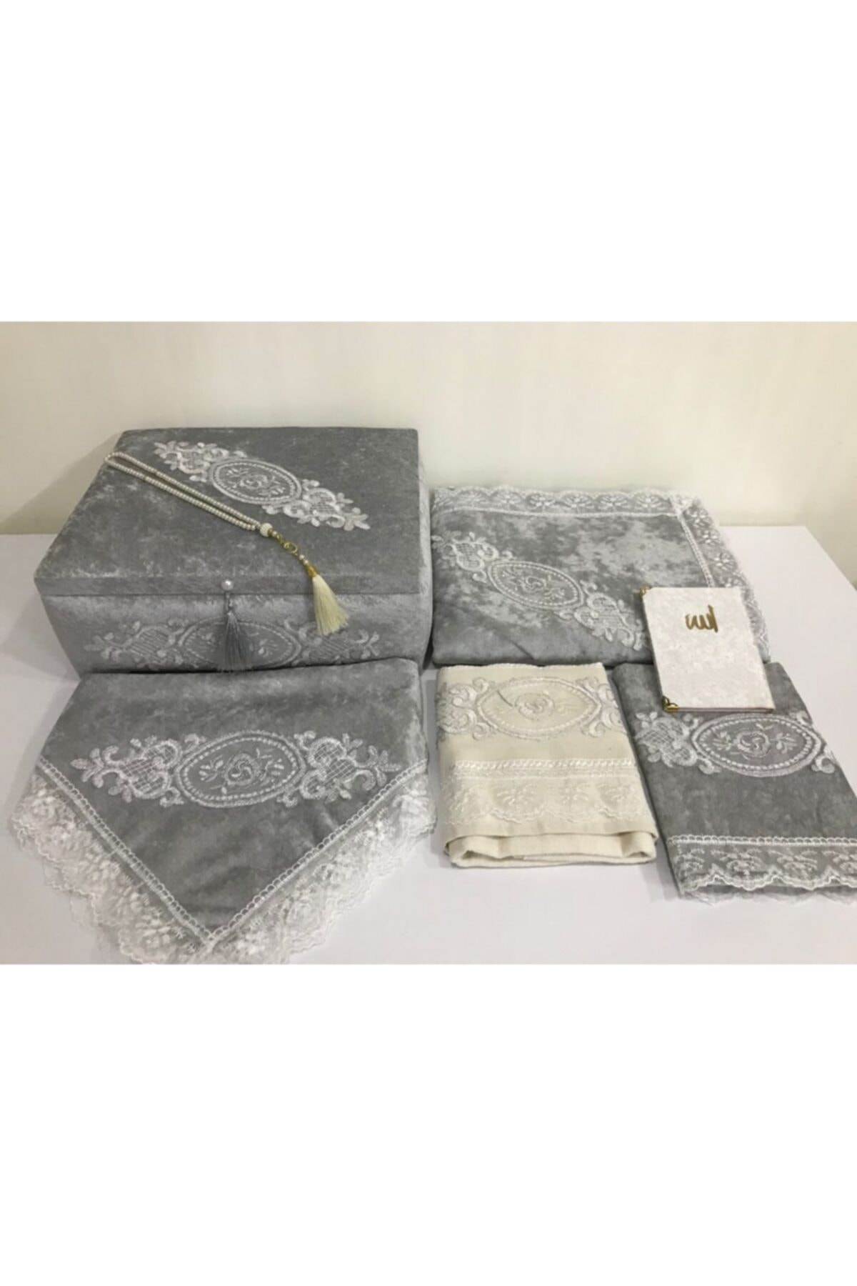 Kadife Gri 7 Parça Damat Fransız Güpür Sandıklı Seccade Takımı Bohça Seti Kadife Gri 7 Parça Damat Fransız Güpür Sandıklı Seccade Takımı Bohça Seti ASEL0768 70 x 120