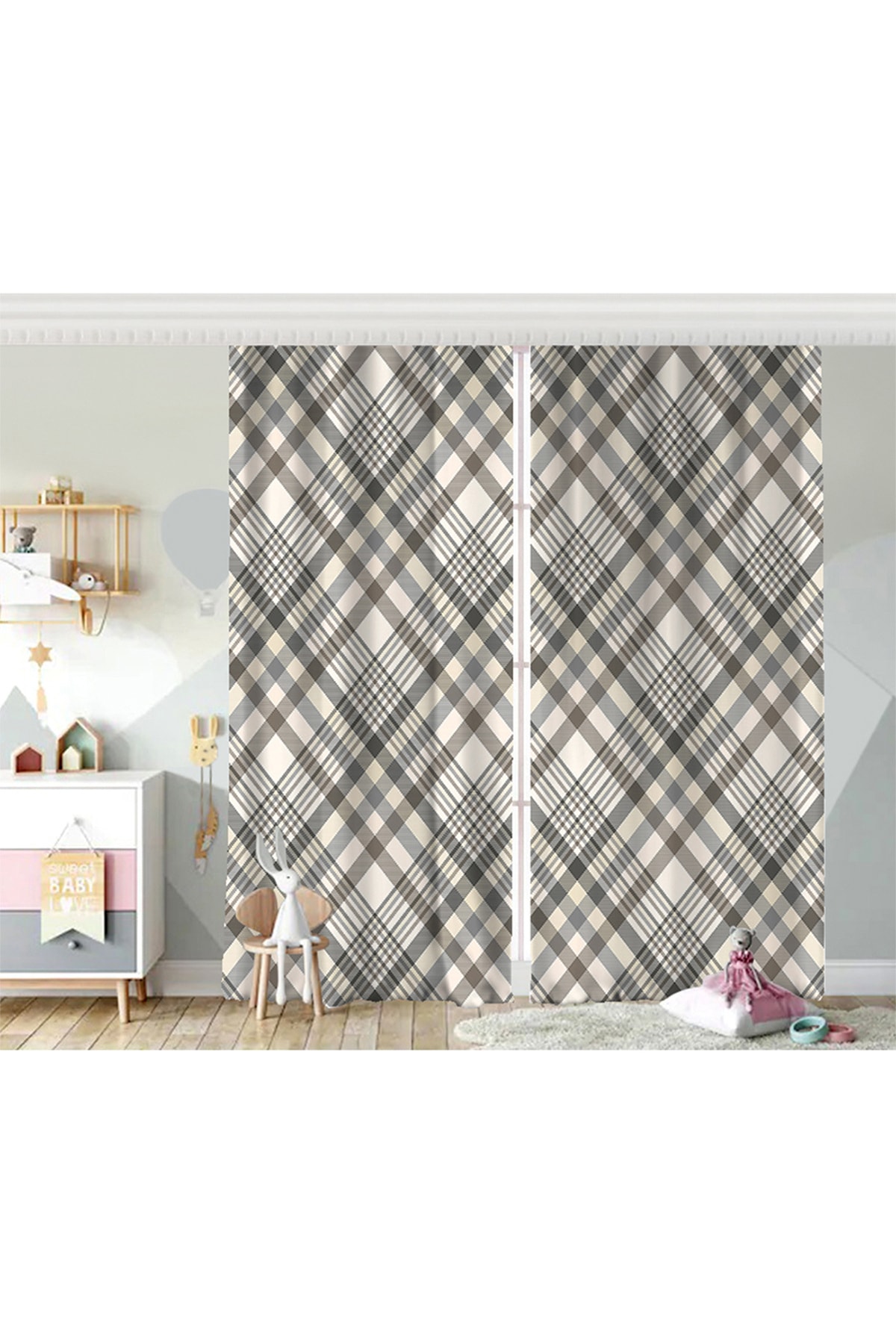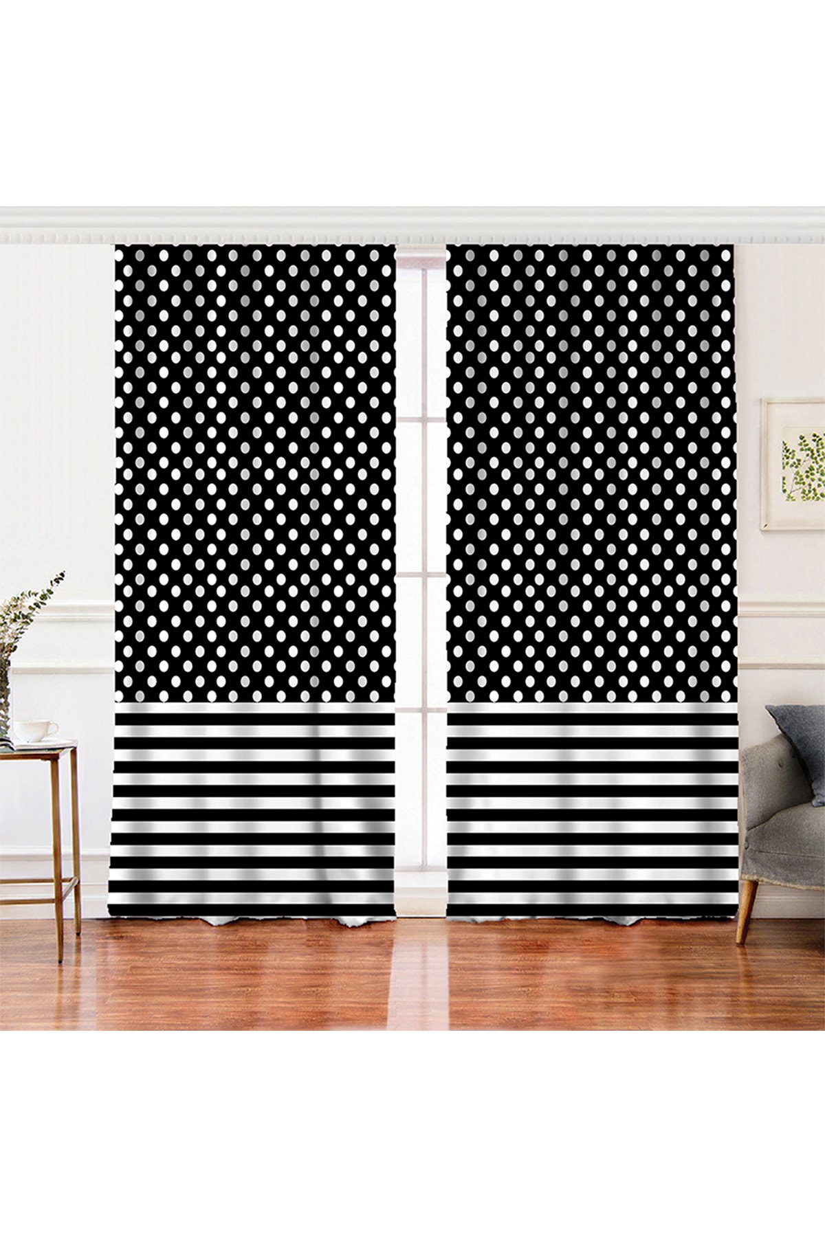 Çift Kanat Beyaz Zemin Üzerinde Siyah Ekose Desenli Dijital Baskılı Fon Perde Çift Kanat Beyaz Zemin Üzerinde Siyah Ekose Desenli Dijital Baskılı Fon Perde Rh-PerdeCift-8673 140 x 260
