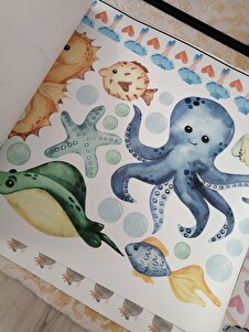 Deniz Canlıları Çocuk Odası Duvar Sticker Seti Deniz Canlıları Çocuk Odası Duvar Sticker Seti STCKREKSP108 100 x 90