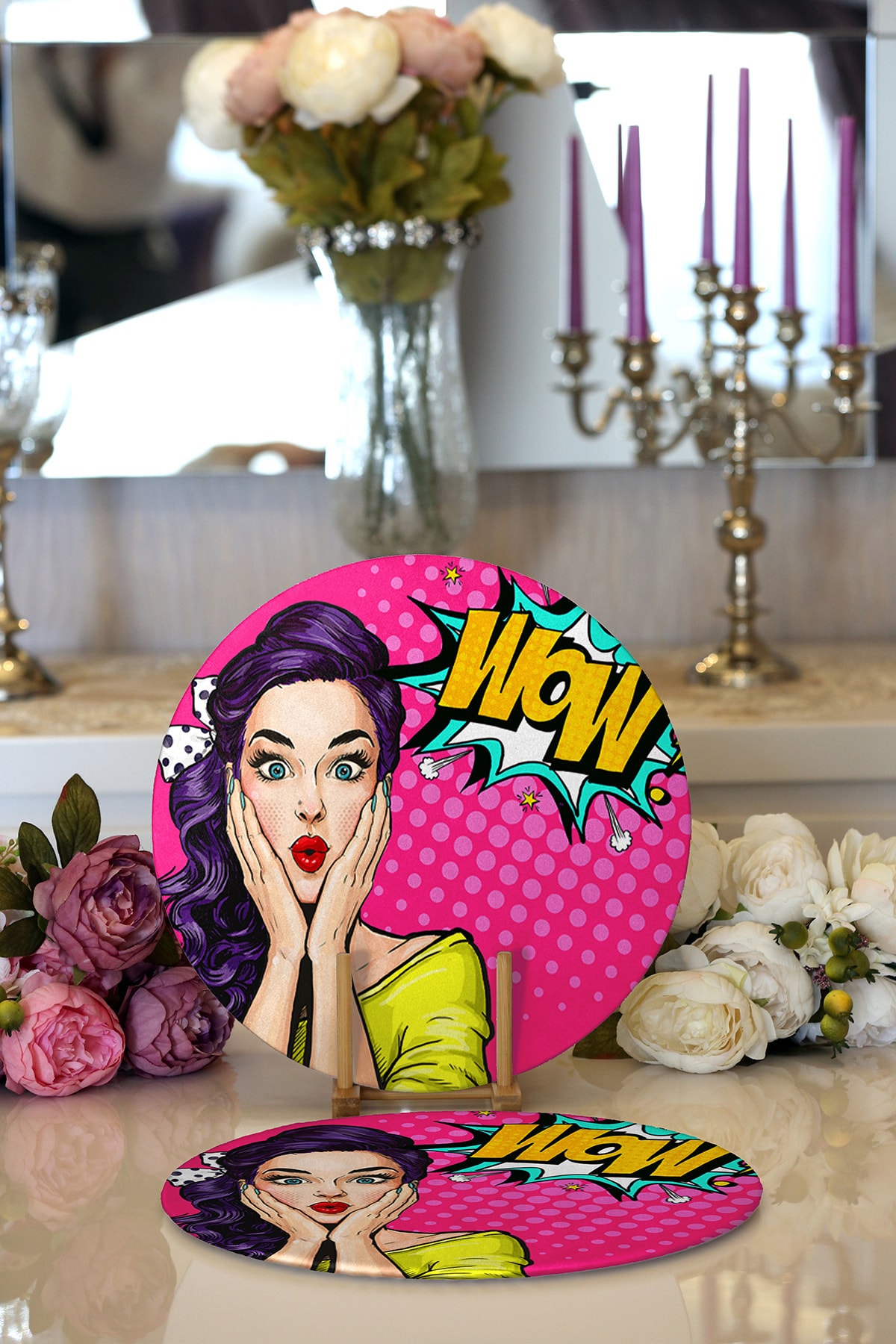 2'li Pop Art Resimli Dijital Baskılı Modern Yuvarlak Supla & Servis Altlığı 2'li Pop Art Resimli Dijital Baskılı Modern Yuvarlak Supla & Servis Altlığı Supla2li-736 تک سایز