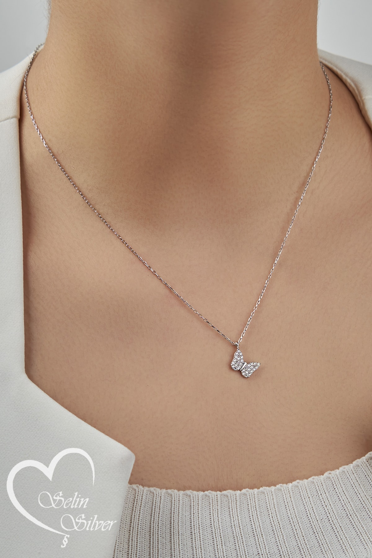 Kelebek Kolye Mini Mavi Taşlı 925 Ayar Gümüş Kolye Kelebek Kolye Mini Mavi Taşlı 925 Ayar Gümüş Kolye KLBKMİNİ 43 cm