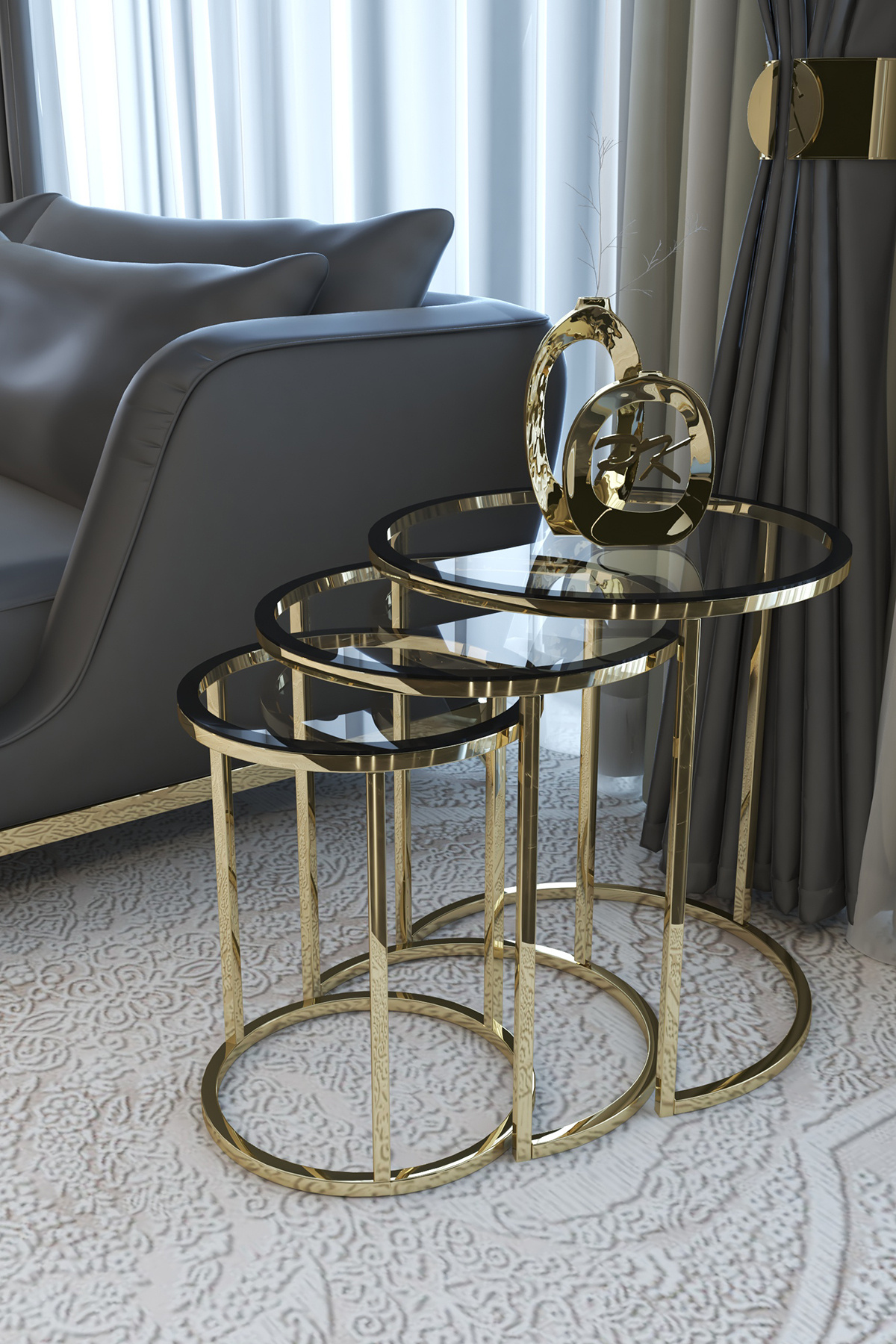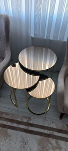 Ceylin 3lü Zigon Sehpa Gold Renk Metal Ayak, Bronz Aynalı Ceylin 3lü Zigon Sehpa Gold Renk Metal Ayak, Bronz Aynalı PKZ1 تک سایز