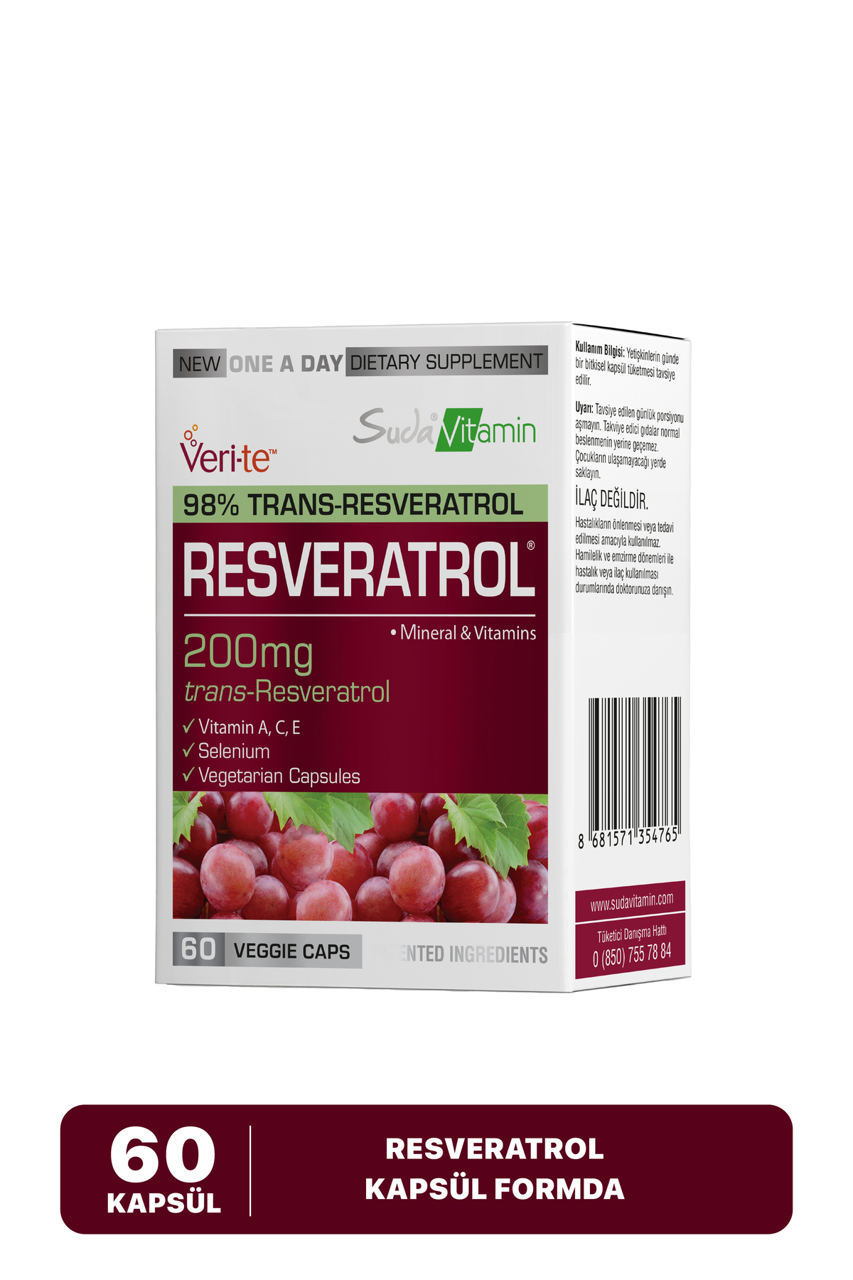 Resveratrol Vitamin A,C,E, +Selenyum | Cilt + Bağışıklık Desteği | 60 Kapsül Resveratrol Vitamin A,C,E, +Selenyum | Cilt + Bağışıklık Desteği | 60 Kapsül VİS-SUD-023 تک سایز