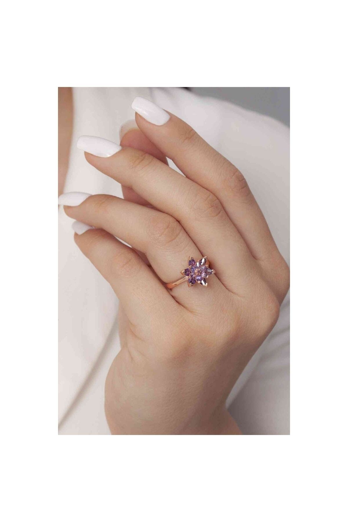925 Ayar Gümüş Rose Kaplama Mor Renkli Lotus Çiçeği Yüzük 925 Ayar Gümüş Rose Kaplama Mor Renkli Lotus Çiçeği Yüzük P634S7012 تک سایز