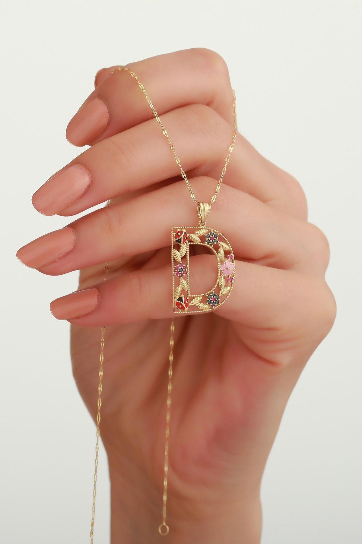 14 Ayar Altın D Harf Çiçek Kolye 14 Ayar Altın D Harf Çiçek Kolye KLYHRFCCKD 40 cm